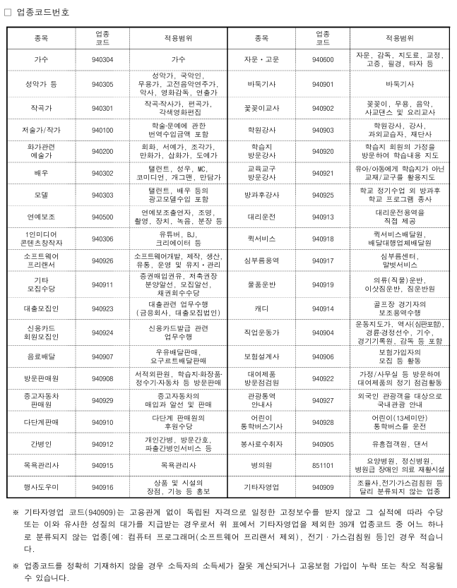 다. ⑩ 업종구분란은 소득자의 업종에 해당하는 업종코드번호(3쪽 참조)를 적습니다.