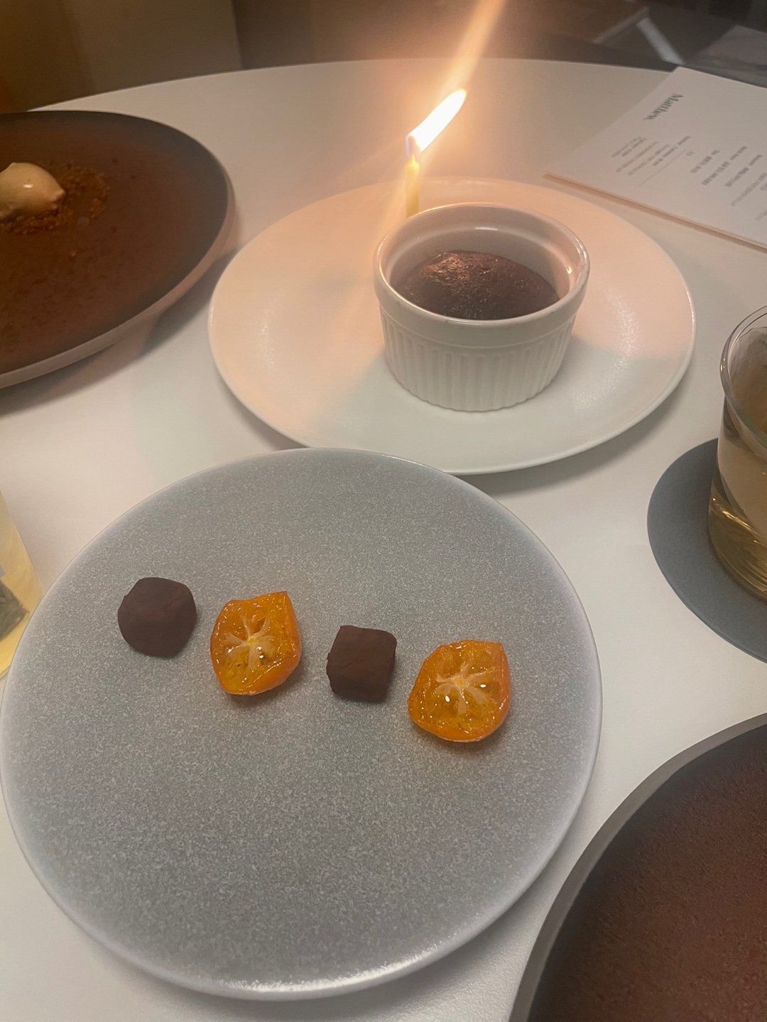 8) Dessert / Fetit four / Tea : 흑메밀 아이스크림, 금귤청과, 파베초콜릿, 호지차