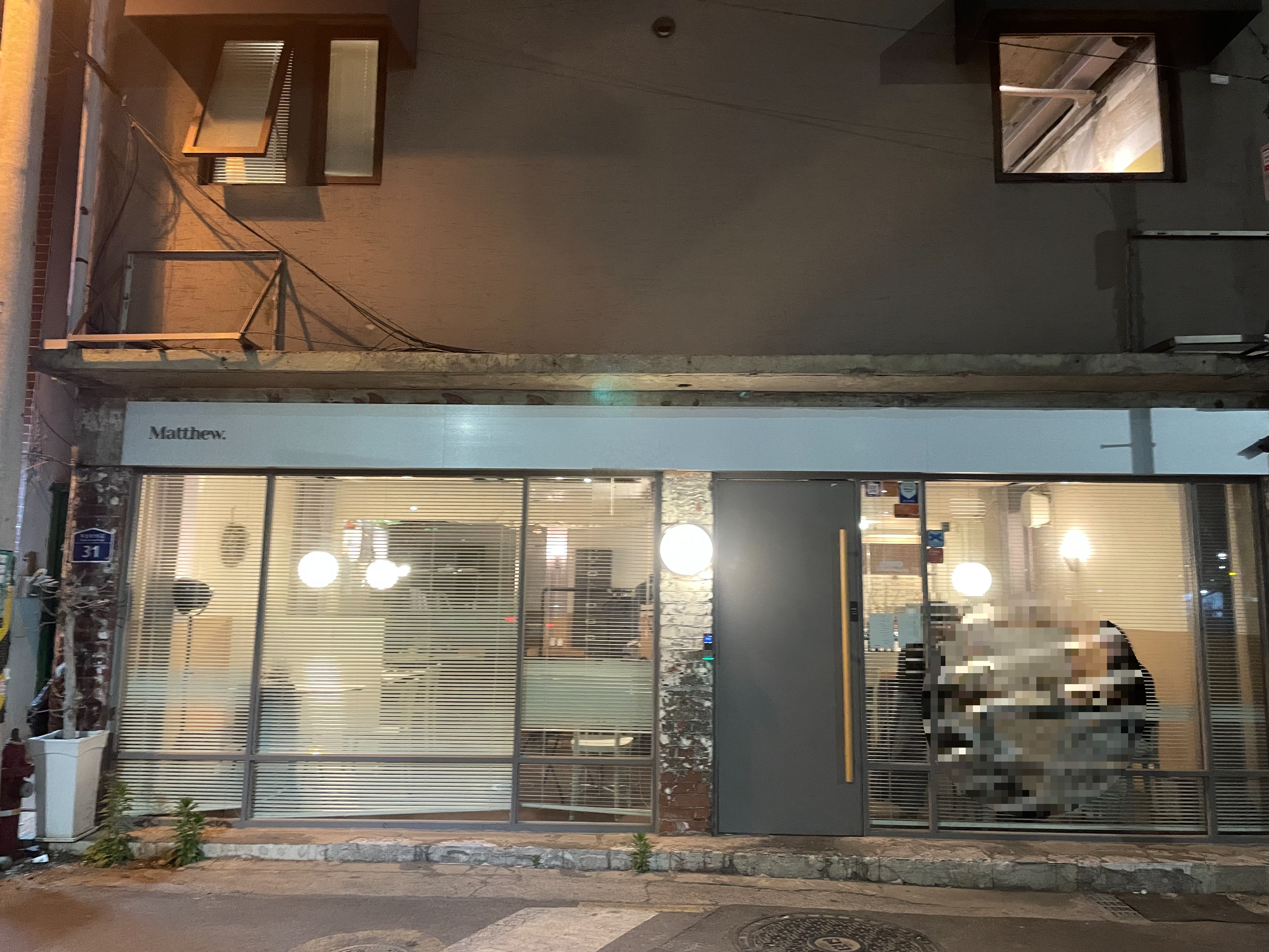 외부는 깔끔하고 심플한 모던한 느낌이다. 테이블은 5-6 테이블이고, 조명이 따뜻한 느낌이어서 가정집 분위기도 난다. 흰 바탕에 기다란 간판 끝에 아주 작게 Matthew.라고 적혀있으니 주의 깊게 보지 않으면 그냥 지나칠 수 있다.