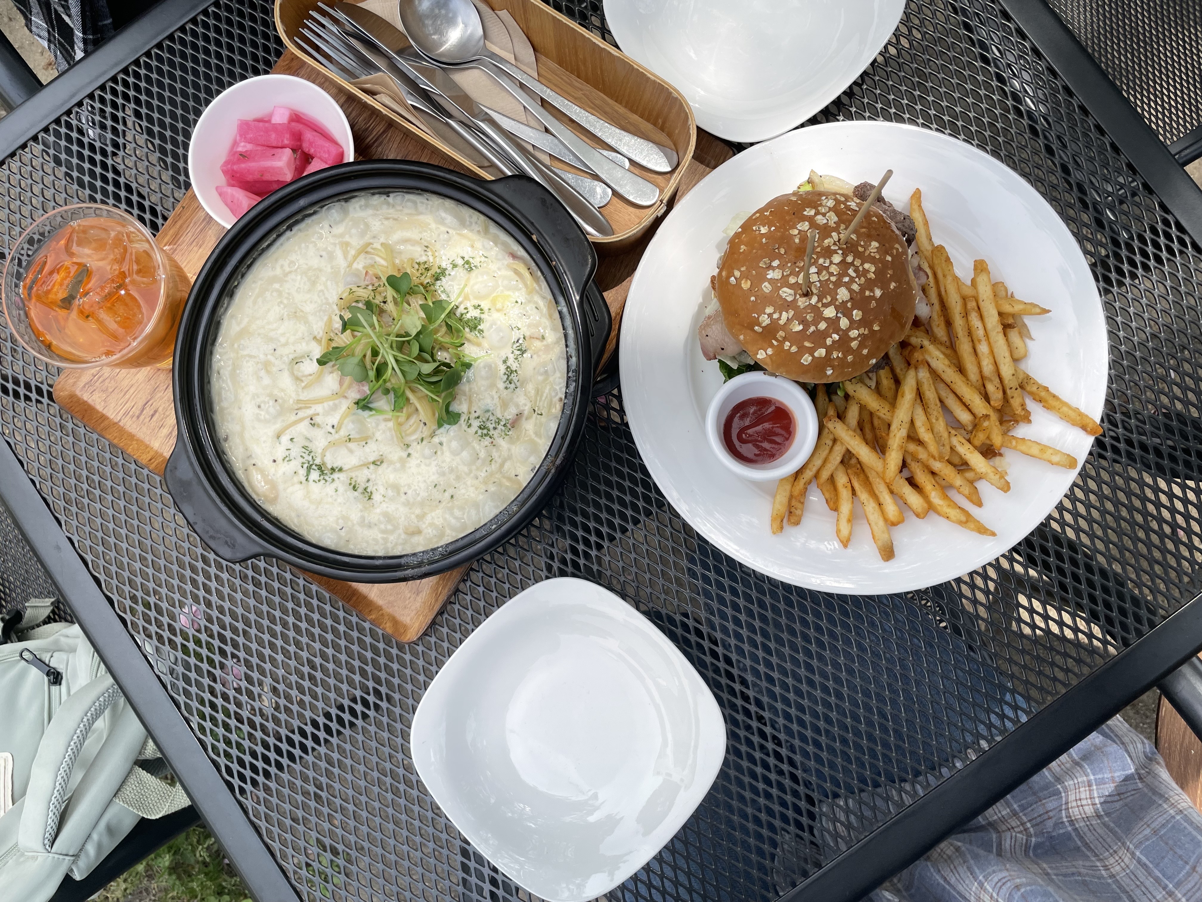 날이 화창하고 야외 테이블에서 먹으니 기분이 좋았다. 맛도 있었지만 그 야외테이블이 주는 분위기가 있다. 서울은 야외테이블이 있어도 미세먼지가 심해서 굳이 밖에서 먹지는 않지만 경주에 오니 확실히 공기도 좋고 평일이라 사람들도 많이 없어서 좋은 식사가 된 것 같다.