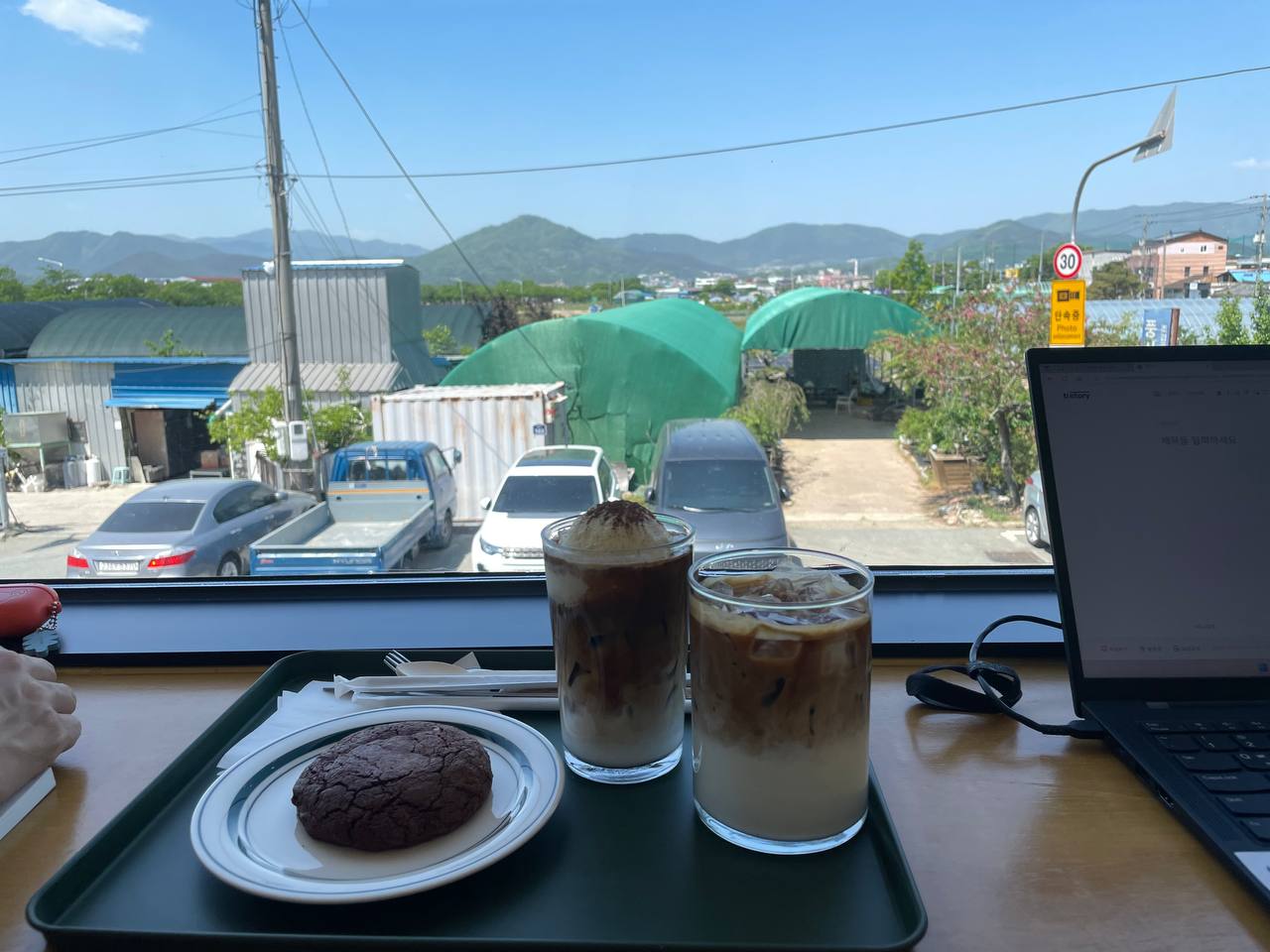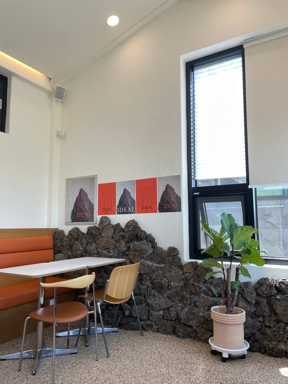 1층에는 바 형식의 테이블로 되어있어서 엄청 힙한 느낌이지만 2층은 또 다르게 독특한 인테리어에 쾌적한 공간이 맞이해 준다. 제주 돌담 느낌도 나고 창가 자리에 앉으면 파릇한 산이 가득해서 기분이 좋아진다. 이상적이라는 카페의 이름처럼 뭔가 신비로우면서 독특한 공간이다. 책 한 권 들고 바깥을 보며 여유를 즐기다 보면 시간은 정말 후딱 간다. 건물도 신축이고 너무 깨끗해서 좋았고, 내가 방문한 날은 날씨가 너무 좋아서 정말 탁 트이는 기분이었다.