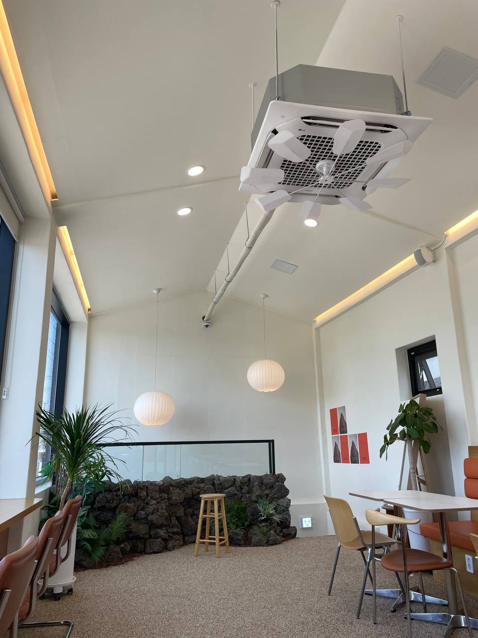 1층에는 바 형식의 테이블로 되어있어서 엄청 힙한 느낌이지만 2층은 또 다르게 독특한 인테리어에 쾌적한 공간이 맞이해 준다. 제주 돌담 느낌도 나고 창가 자리에 앉으면 파릇한 산이 가득해서 기분이 좋아진다. 이상적이라는 카페의 이름처럼 뭔가 신비로우면서 독특한 공간이다. 책 한 권 들고 바깥을 보며 여유를 즐기다 보면 시간은 정말 후딱 간다. 건물도 신축이고 너무 깨끗해서 좋았고, 내가 방문한 날은 날씨가 너무 좋아서 정말 탁 트이는 기분이었다.