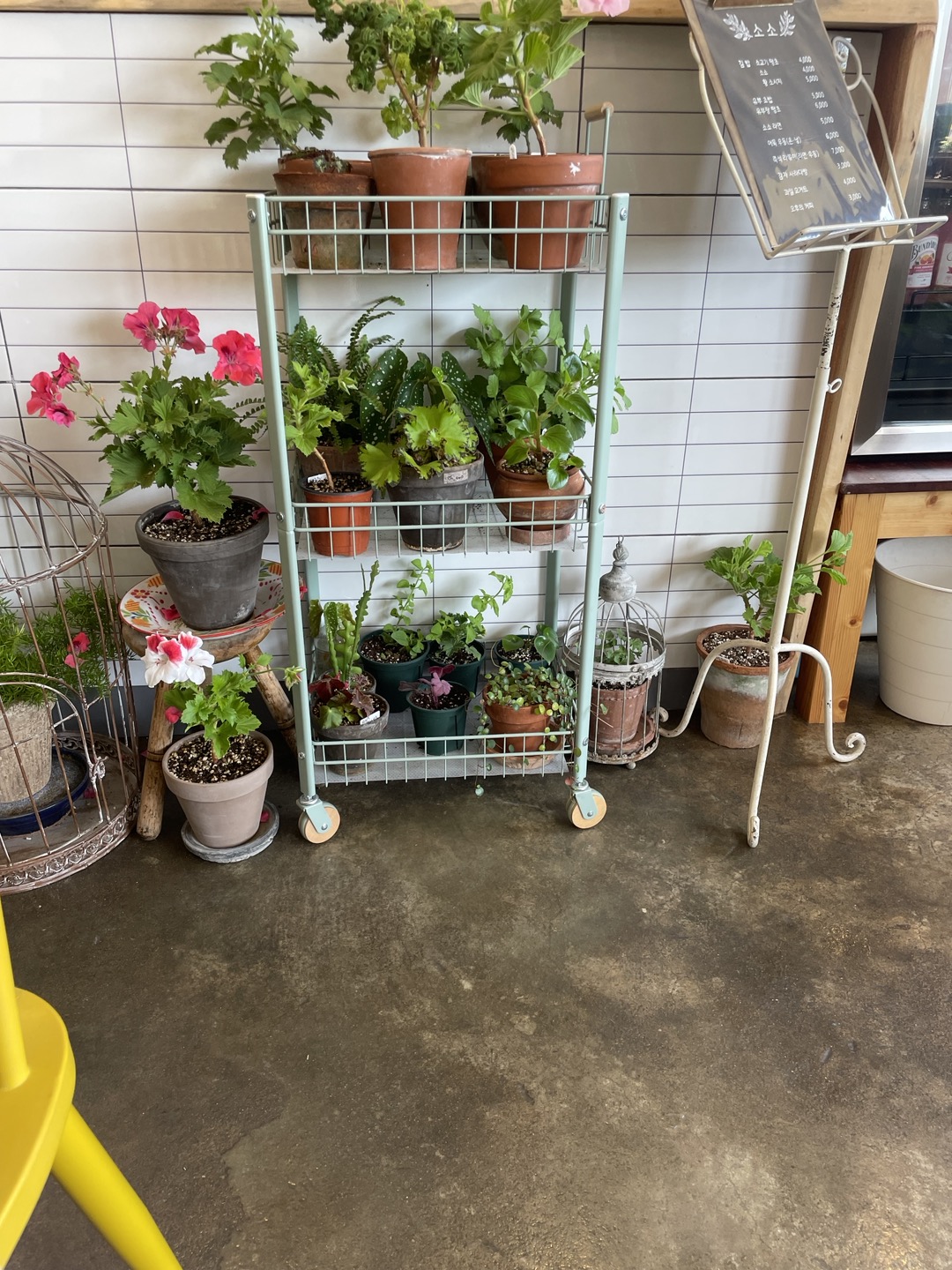 가게 밖에 놓여 있는 화분들도 눈길이 가는데 사장님이 화분 기르시는 것을 좋아하시는 것 같다. 화분은 매일 관리해 줘야 저렇게 파릇파릇함이 유지되는 걸로 아는데 여러 개의 식물이 줄지어 옹기종기 모여있는 것도 진짜 소소하다. 사장님의 화분사랑은 여기서 끝나지 않는다.