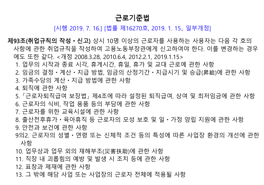 근로기준법 제93조 11호에 따르면 회사 취업규칙에 직장 내 괴롭힘의 예방 및 발생 시 조치 등에 관한 사항을 기재하라고 되어있다. 고용노동부에서 2023년도에 게시한 표준취업규칙에도 세부적인 내용이 나와있으니 참고하면 좋을 것 같다.