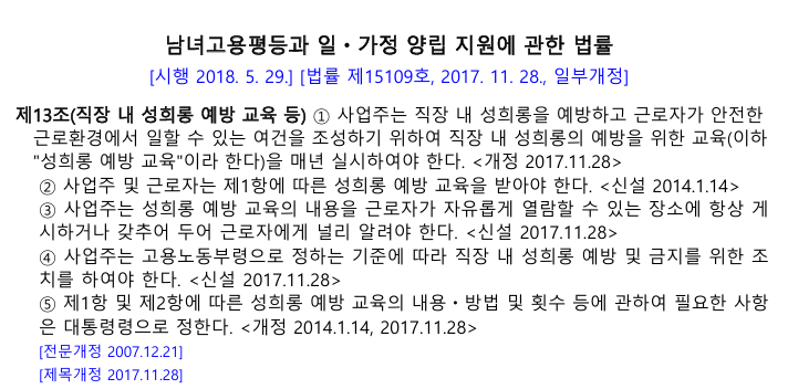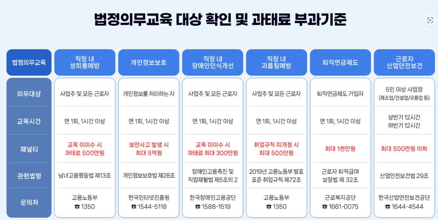 이 부분은 매우 애매한 것 같다. 다른 교육보다 문제가 되면 직장 내 괴롭힘 교육이 가장 문제가 될 것 같은데... 요즘 직장 내 괴롭힘이 많다 보니 문제가 되면 HOT한 이슈가 아닐까 싶다...