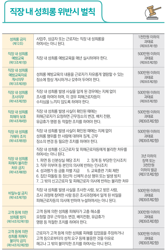 직장 내 성희롱 위반 시 과태료는 아래와 같다.