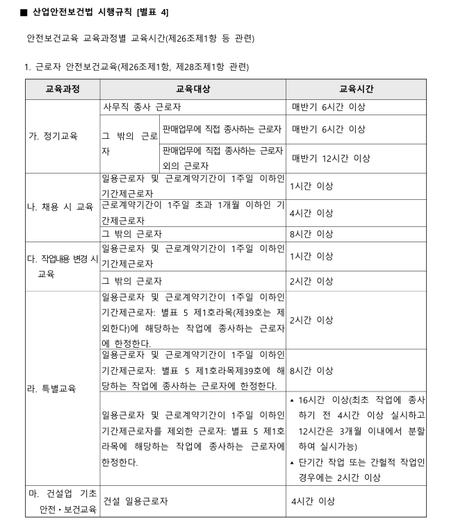 우선, 사업주면 위와 같은 교육을 시행해야 한다. 종류도 너무 많고, 실익이 있는 교육인지 의문이긴 하다. 아무튼 받으라니 받아야지......