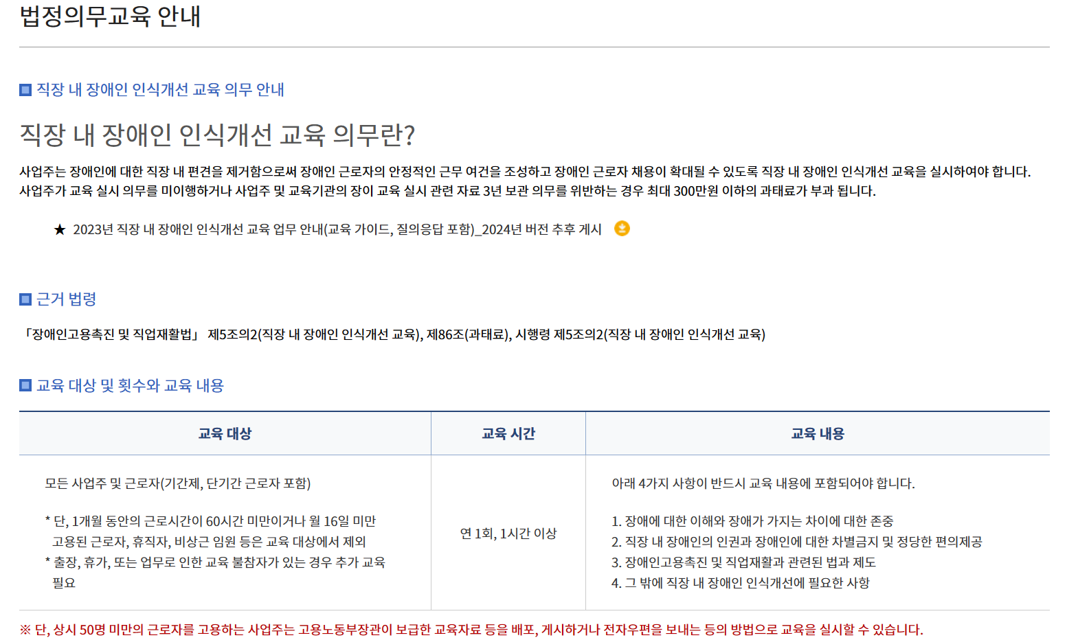 직장 내 장애인 인식개선 교육포털 - 법정의무교육 안내
