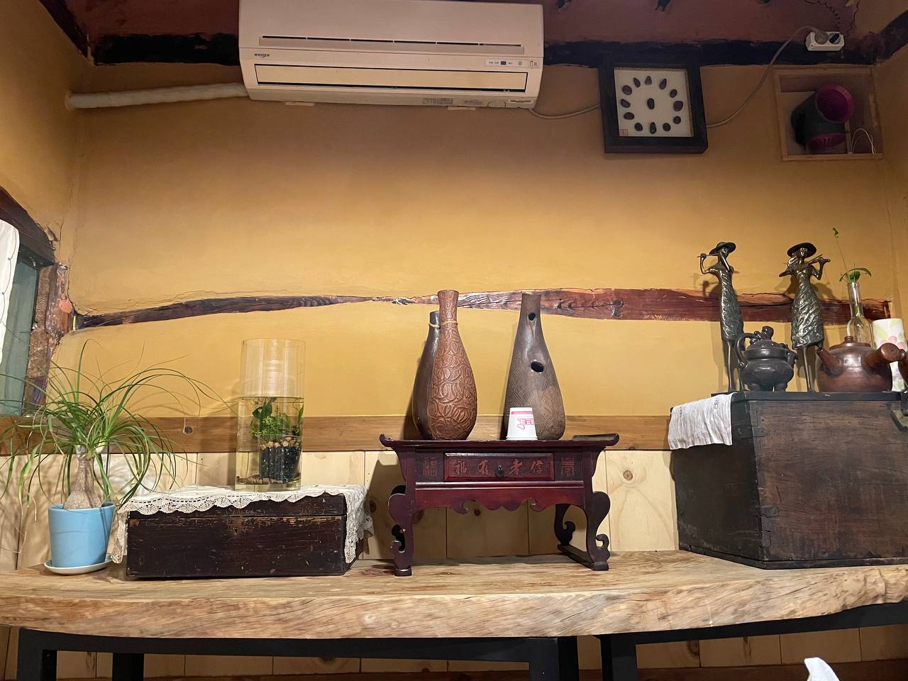 뭔가 초월과 정말 잘 어울리는 곳이라고 생각했다. 정감가는 한옥 인테리어에 앤틱한 소품들이 있으니 정말 고즈넉한 시골 풍경이다. 어렸을 때 할아버지 댁에 놀러 가면 이런 풍경이었는데 뭔가 입구부터 좋은 예감이 들었다. '영업을 하시고 계실까?'라는 두근두근한 마음을 가지고 입구에 들어서면 벨소리가 울리면서 주인아주머니께서 맞아주신다.