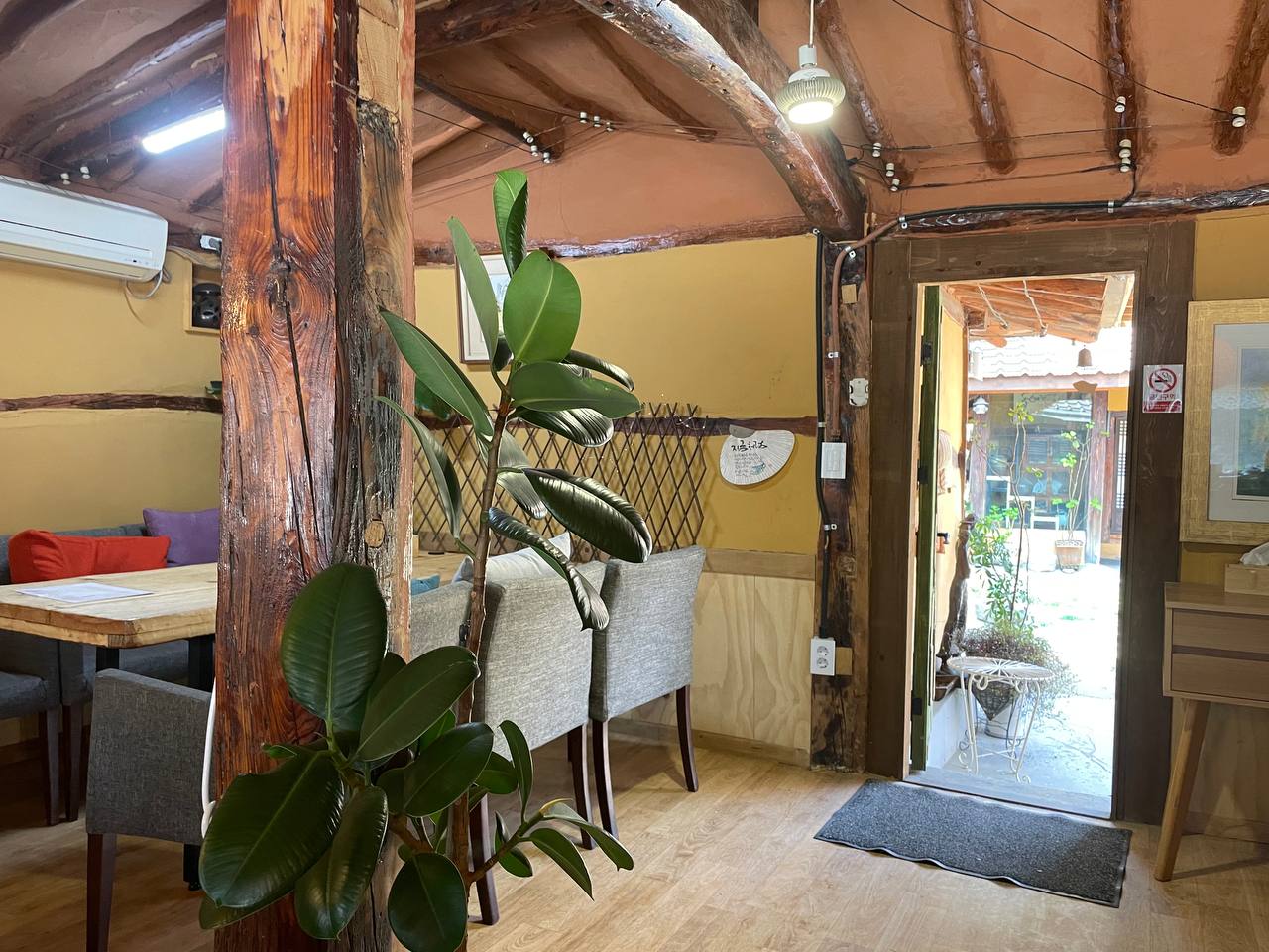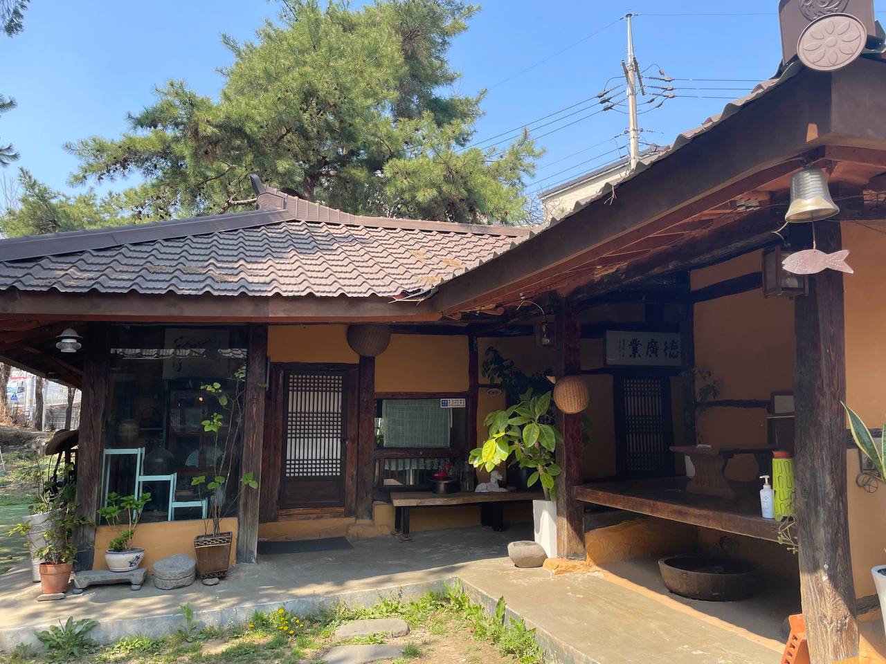 내부도 한옥 분위기를 그대로 살려서 예쁘게 꾸며놓으신 것 같다. 안에 들어가 앉으면 이곳에 매력이 더 크게 다가온다. 바깥에서 들리는 새소리와 바람에 흔들리는 종소리가 너무 좋게 들린다.