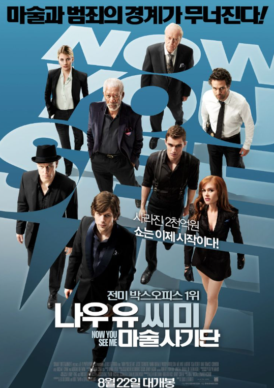 나우 유 씨 미는 현대의 미국을 배경으로 한 영화입니다. 하지만 영화 내에서 나오는 마술 쇼는 우리가 현실에서 보는 마술로는 구현이 어렵습니다. 현실에서 보는 마술이라고 생각하지 않고 판타지 영화의 마술이라고 생각하면 오히려 편하게 즐길 수 있습니다. 2022년 7월 11일 왓챠에서 보았습니다.
