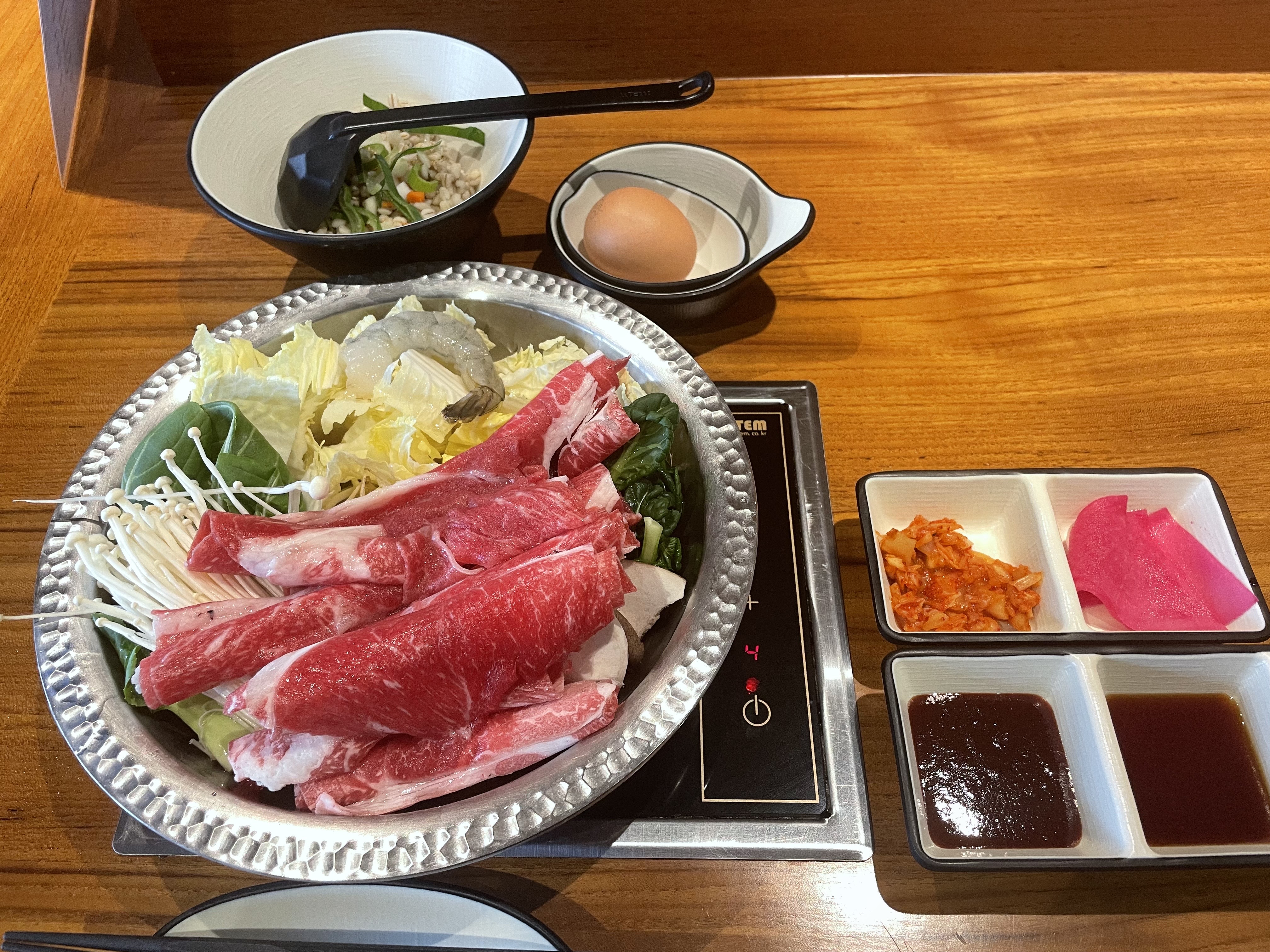 불을 내가 조절할 수 있고, 양념장도 취향대로, 밥/칼국수 중에 선택해서 먹을 수 있다. 사실 샤브샤브 집에서 재료가 신선하면 말 다했다고 보는데 오픈한 지 얼마 안 된 곳이라 매장도 너무 깔끔하고 식재료도 깔끔 그 자체이다.