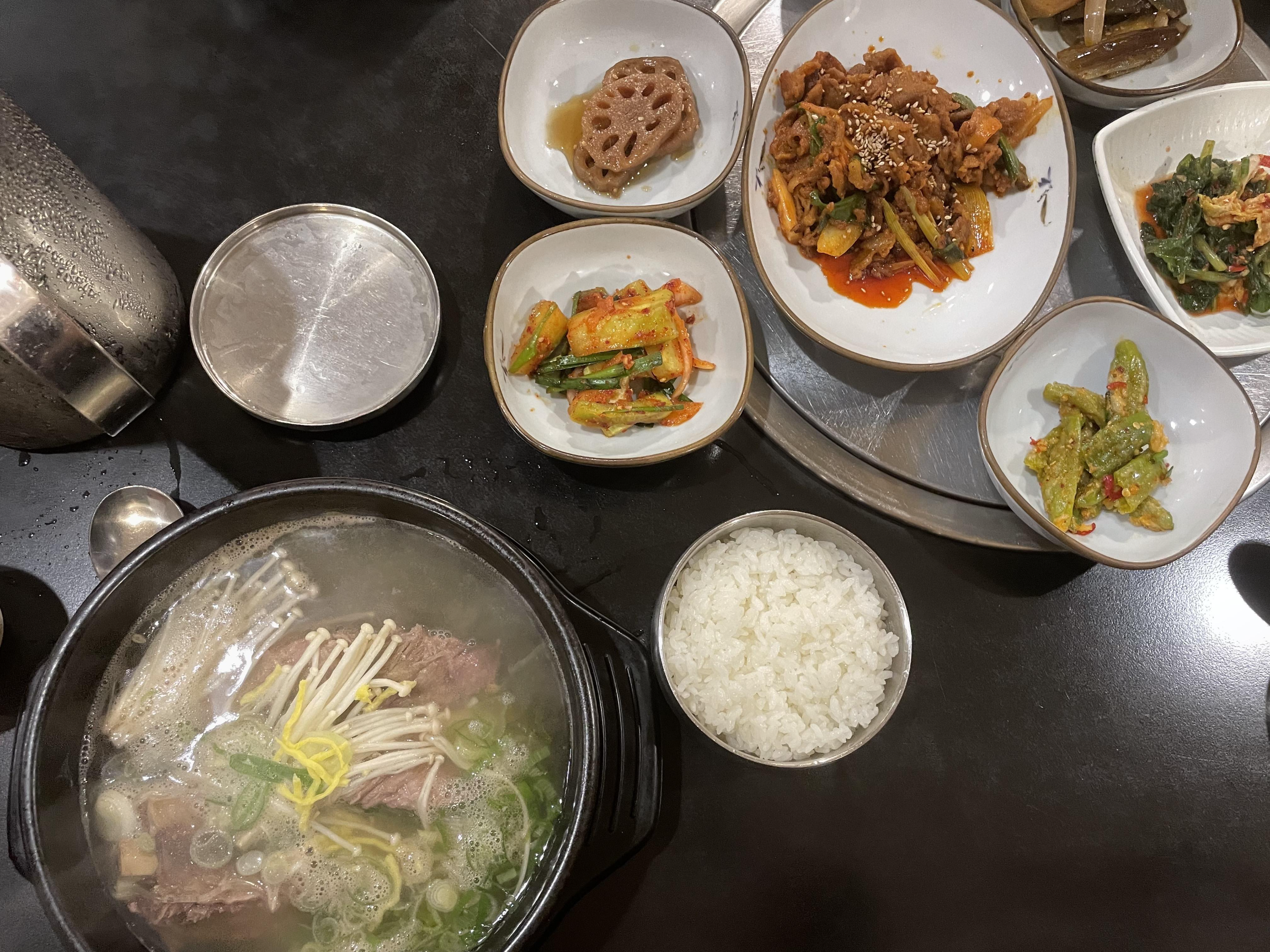 점심에 한식이 먹고싶을 때 자주 가는 곳이다. 아무래도 논현동에 있어서 가격대가 있는 편이다. 갈비탕이 19,000원 하지만 내 최애음식도 갈비탕인걸... 낙지비빔밥이나 육회비빔밥도 맛있고, 다른 분들은 우거지국밥도 자주 시켜 먹는데 난 주로 갈비탕을 먹는다. 국물이 시원하고 딱 비 오는 날이나 으슬으슬한 날 먹으면 진짜 좋다. 저기 반찬에 나온 제육볶음은 원래 식사메뉴인데 회사에서 반찬으로 시켜 먹는다. 한식은 기본이 정말 중요한데 모든 음식이 기본에 충실해서 나온다.