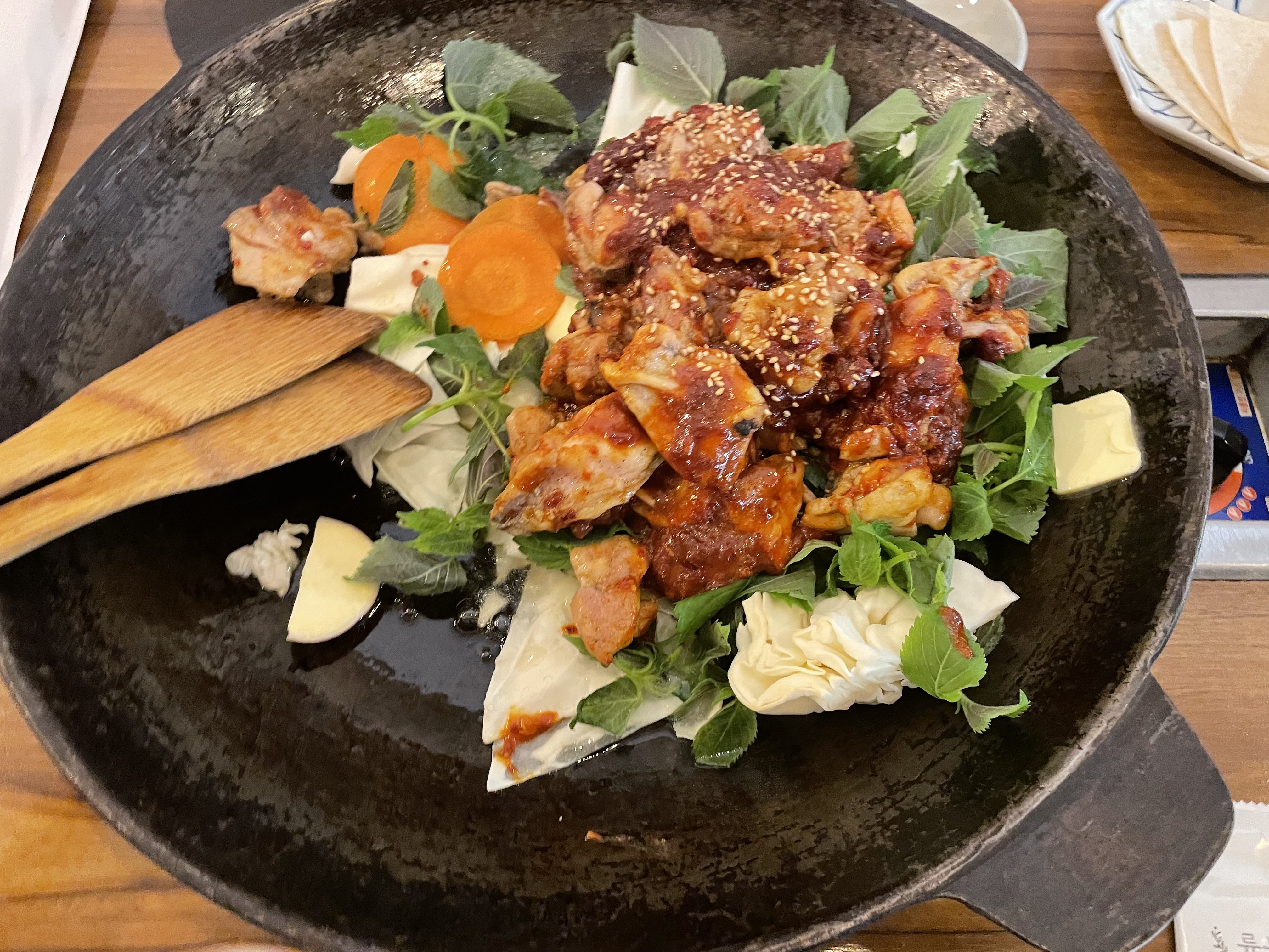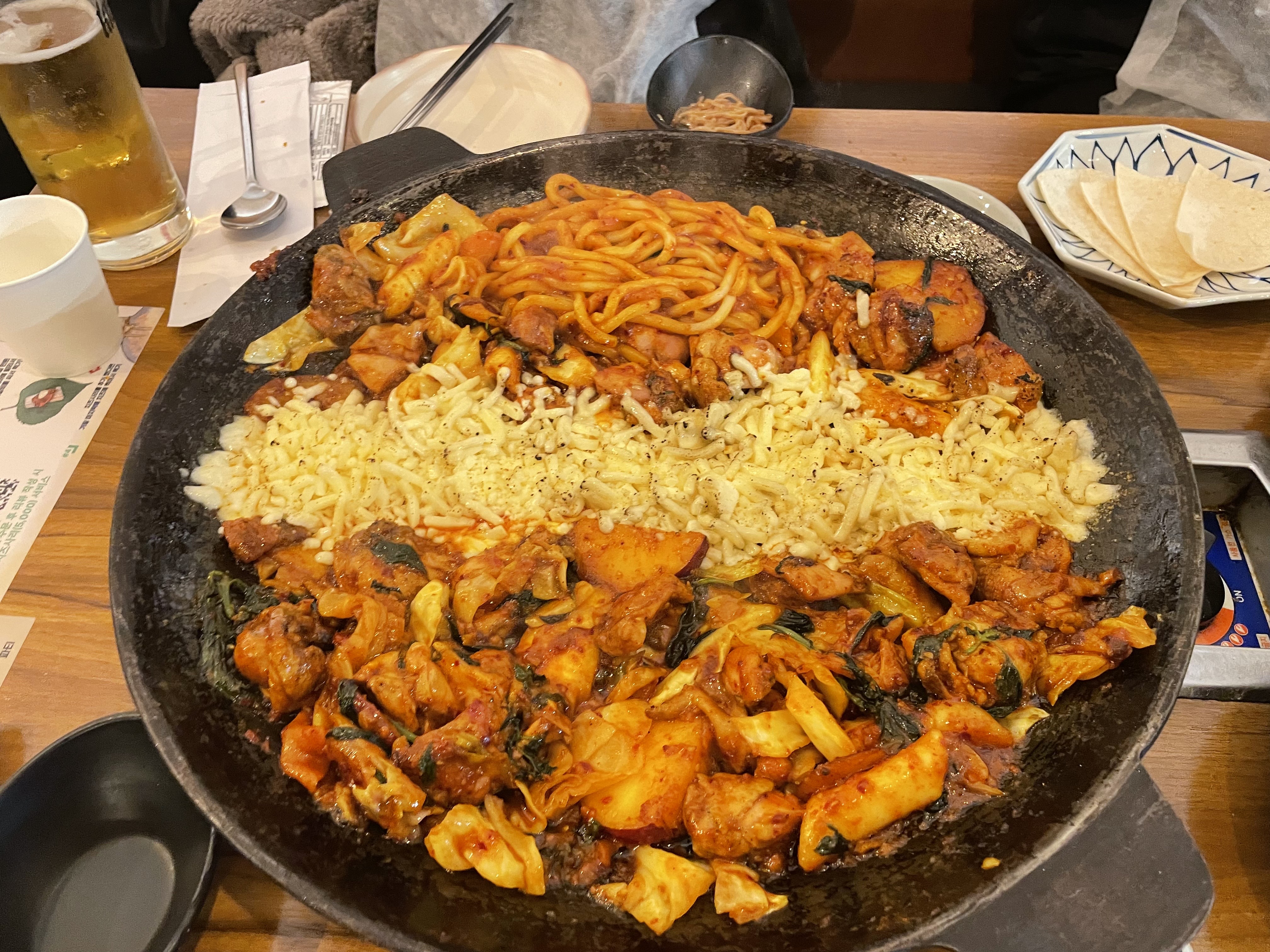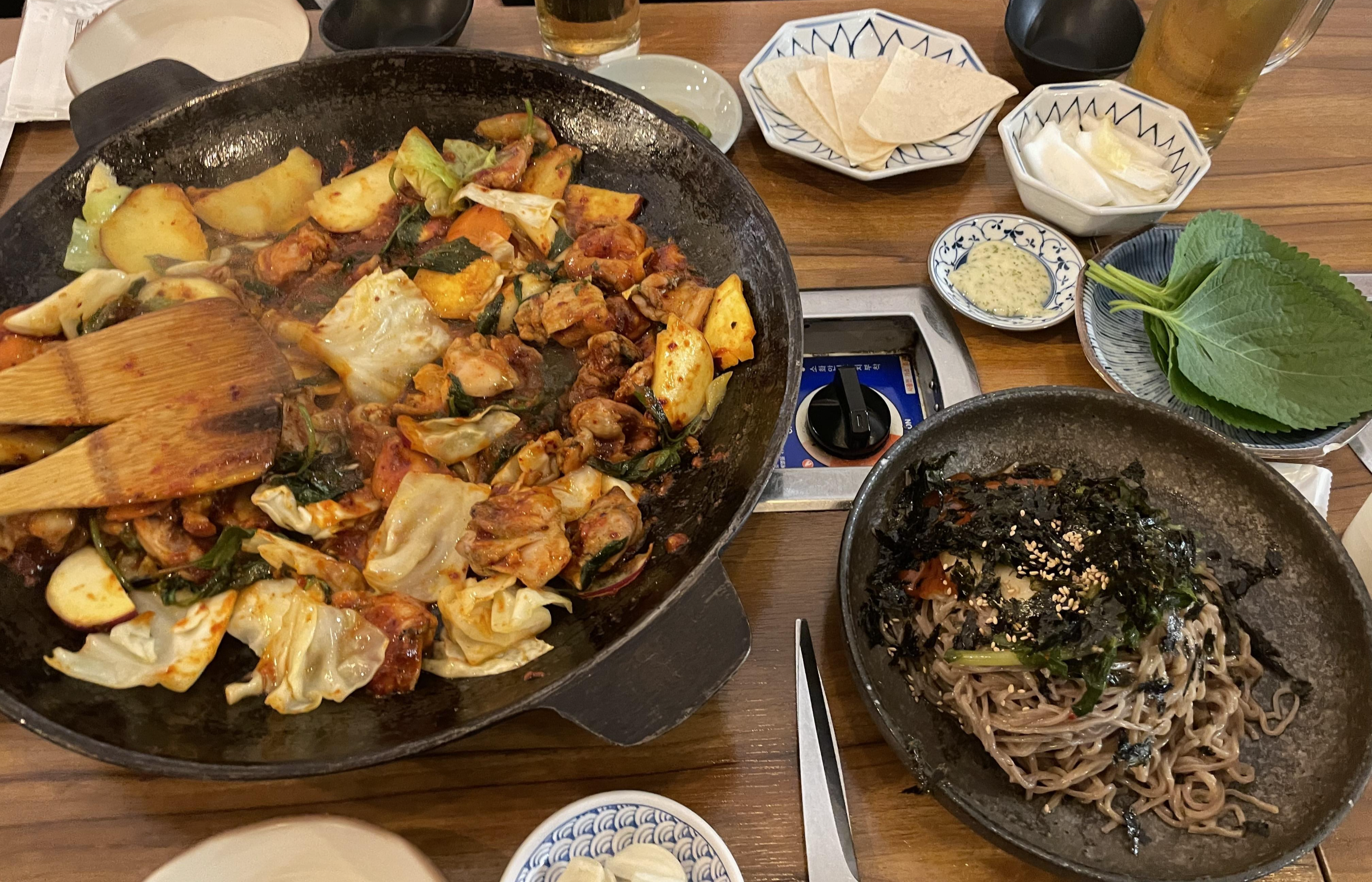 불쇼를 볼 수 있는 닭갈비집 '류몽민'. 그냥 맛있다. 내가 발굴해서 미식가 친구에게 검사를 맡았는데 한 번에 통과한 맛도리집이다. 양이 작아 보여도 정말 배부르고 추가 사리 무조건 시켜서 우동사리랑 치즈도 같이 먹으면 맥주가 자연스럽게 당긴다.