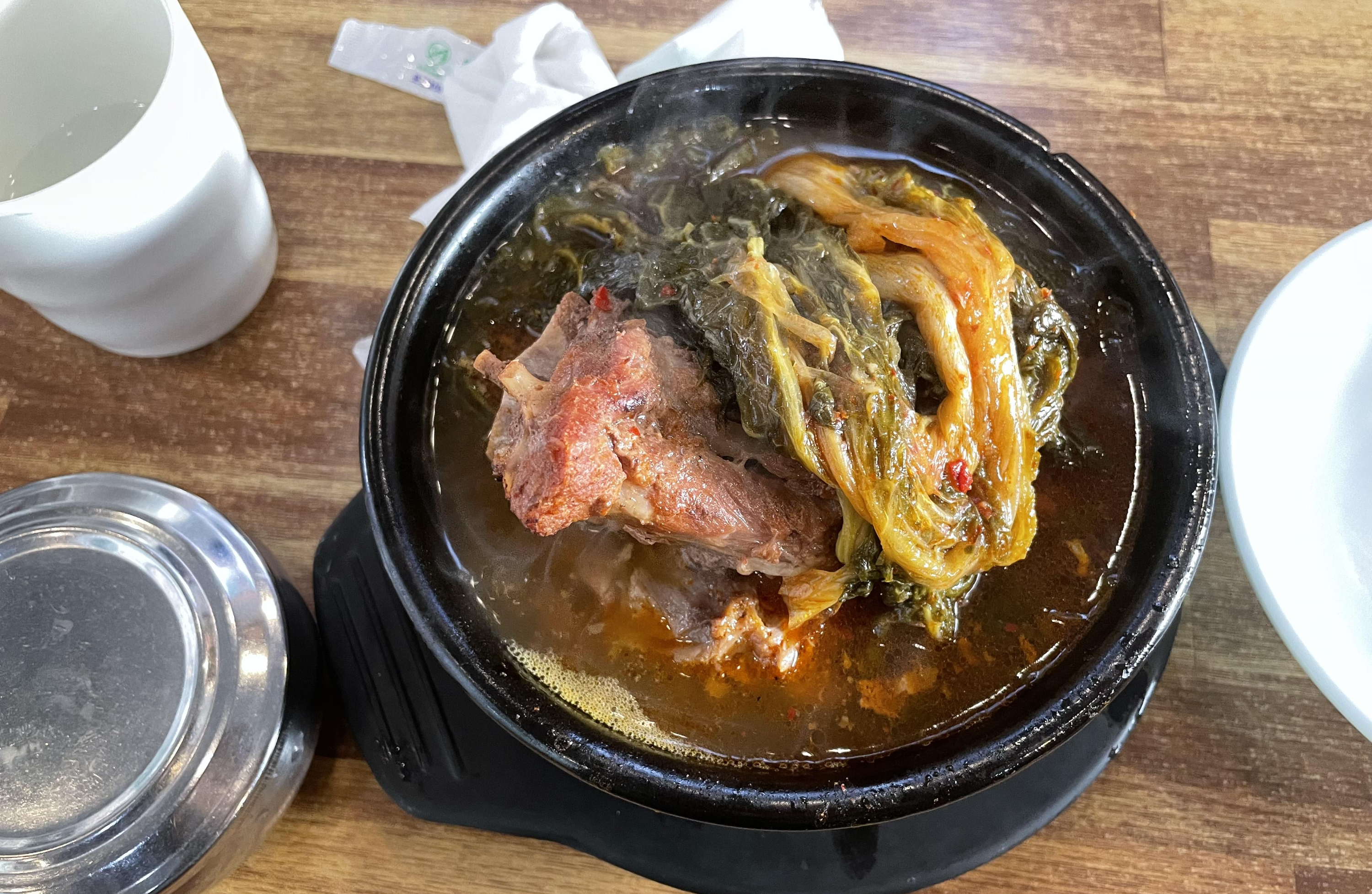 여기와서는 무조건 뼈해장국이다. 그냥 생각하지 말고 뼈해장국을 시켜 먹어보자. 솔직히 만원의 행복이 따로 없다. 이 가격에 저 고기 양이 말이 된다고? 싶다. 25년간 뼈해장국만 연구하셨다고 하는데 25년간 하나 이렇게 연구하면 이 맛을 낼 수 있나 싶다. 맛뜸은 K-패스트푸드점이다. 뼈해장국을 시키면 2-3분 만에 저 한 그릇이 뚝딱 나온다. 그러니 회전율도 엄청 좋고, 줄이 길어도 금방 빠진다. 보통 뼈해장국의 고기를 분해하면 잘 분해가 안 되는 뼈가 있는데 여기는 그냥 부드럽게 잘 발리고 주먹만 한 고기가 2개 들어간다. 여기에 밥 한 공기 먹고 나오면 그냥 절로 잘 먹었습니다가 나오는 맛집이다.