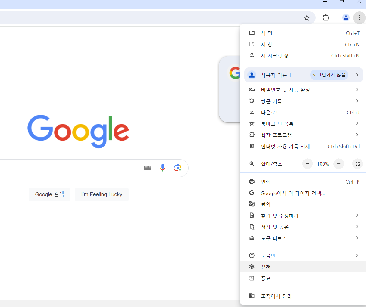 5. 구글 크롬 사용 시 우측 3개 점 누르고 설정 클릭