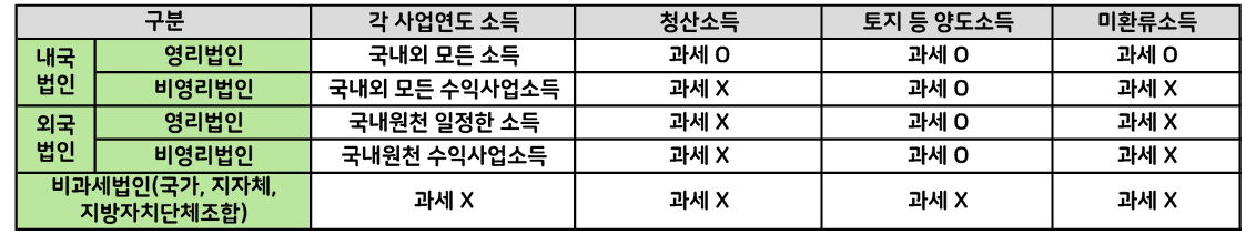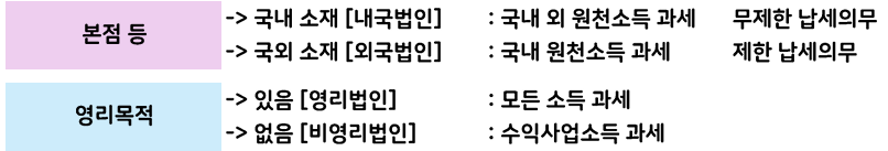 - 비영리외국법인 : 외국법인 중 외국의 정부·지자체 및 영리를 목적으로 하지 않는 법인