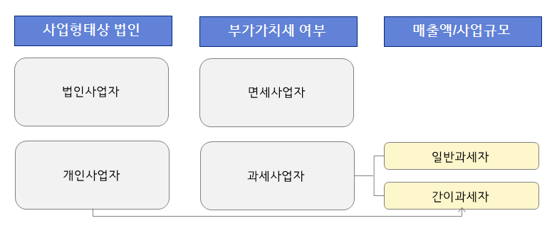 사업자 유형 (법인/개인, 과세/면세, 과세사업자 중 간이/일반)