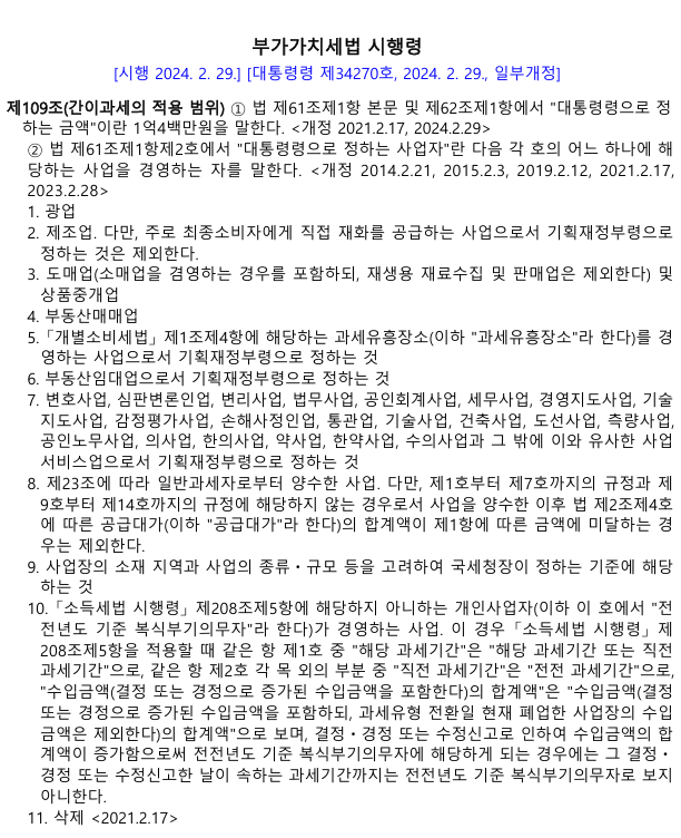 부가가치세법 시행령 109조