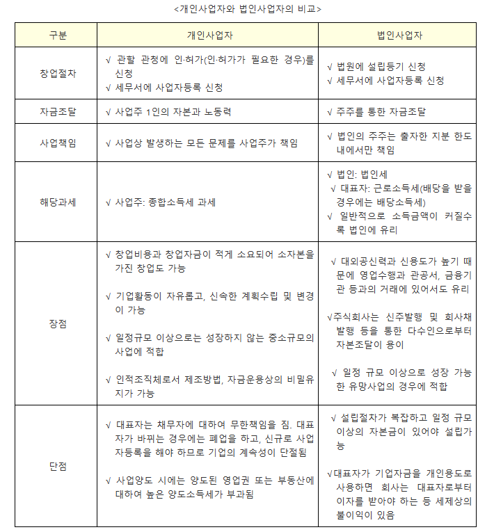 - 개인사업자: 등록된 대표자가 경영의 모든 책임을 지는 사업자
