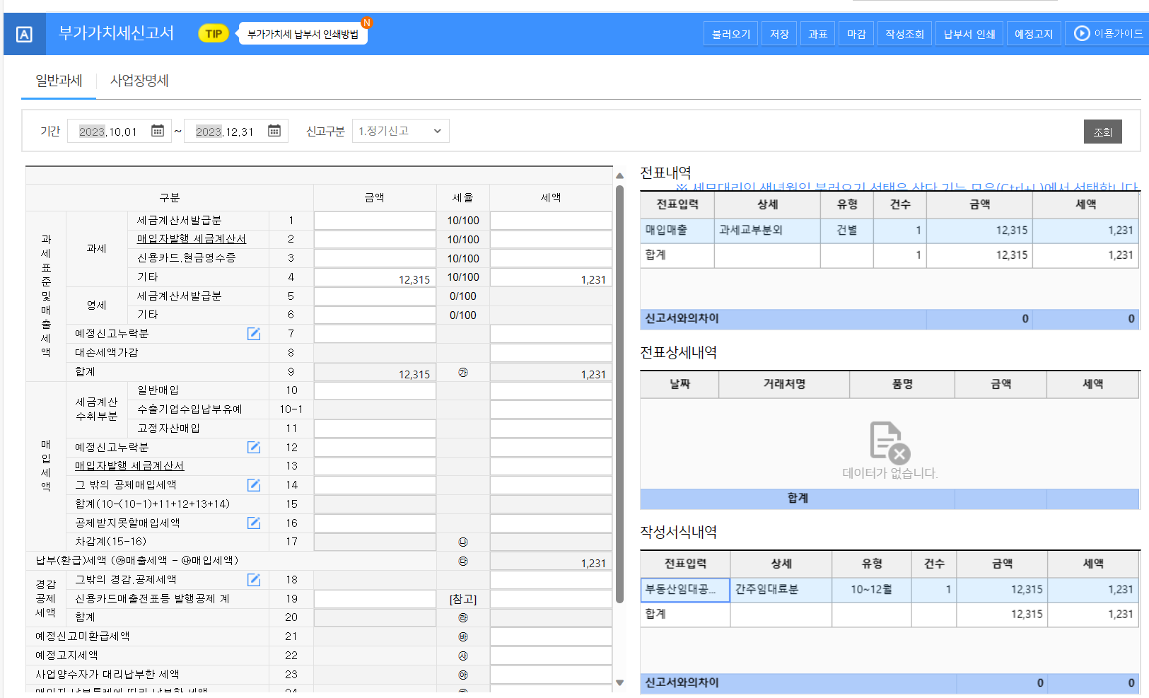 1. 명세서 기간을 부가세 신고 기간으로 설정한다
