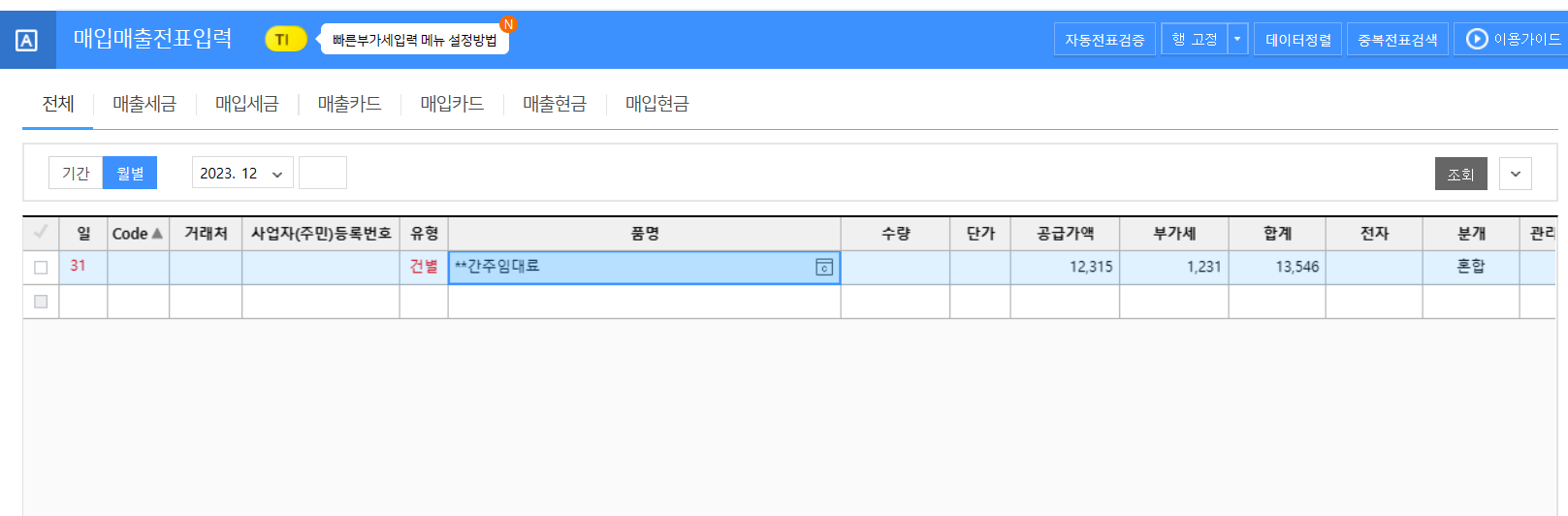 더존위하고, 부동산임대공급가액명세서 작성하는 방법