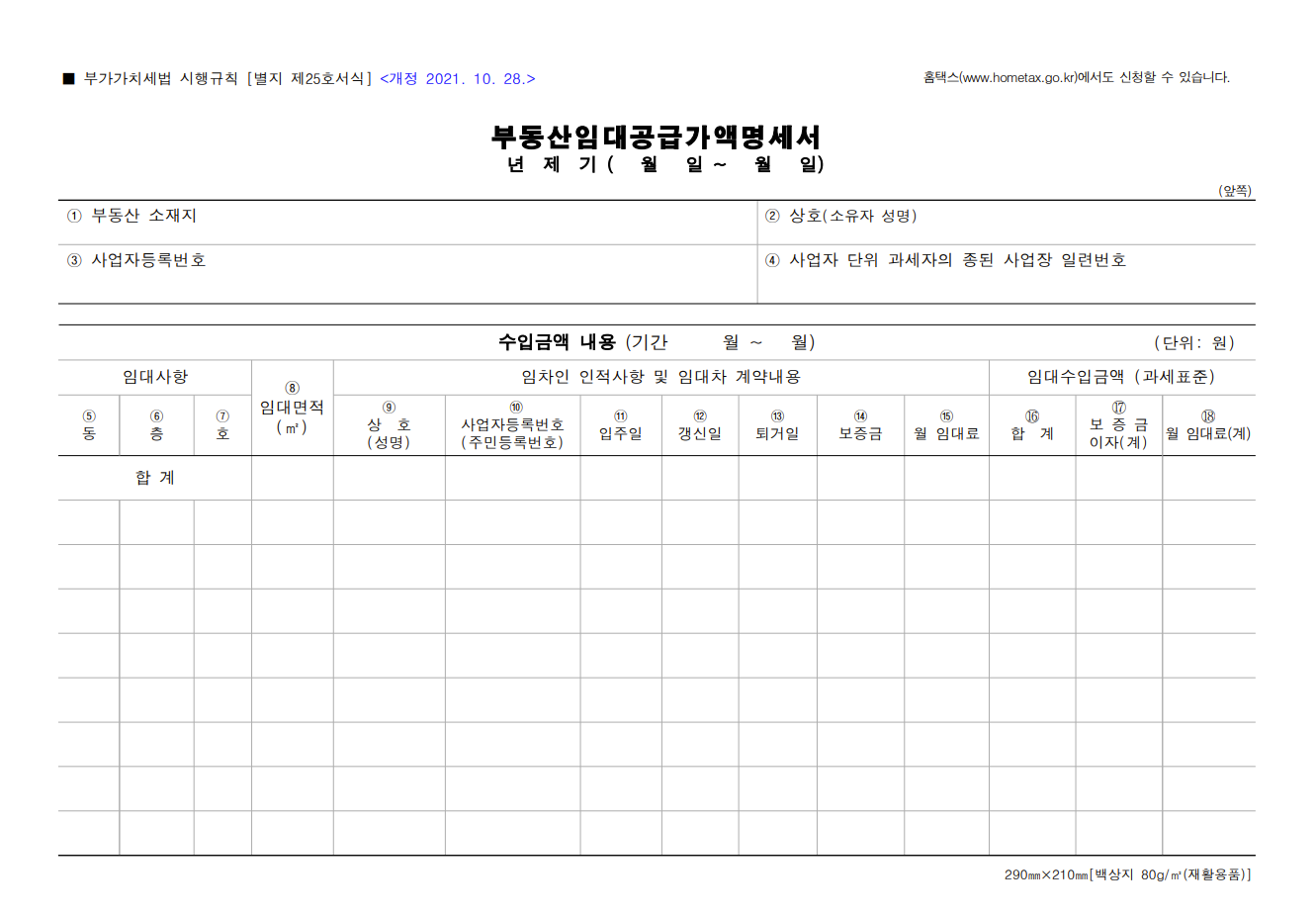 부동산임대공급가액명세서