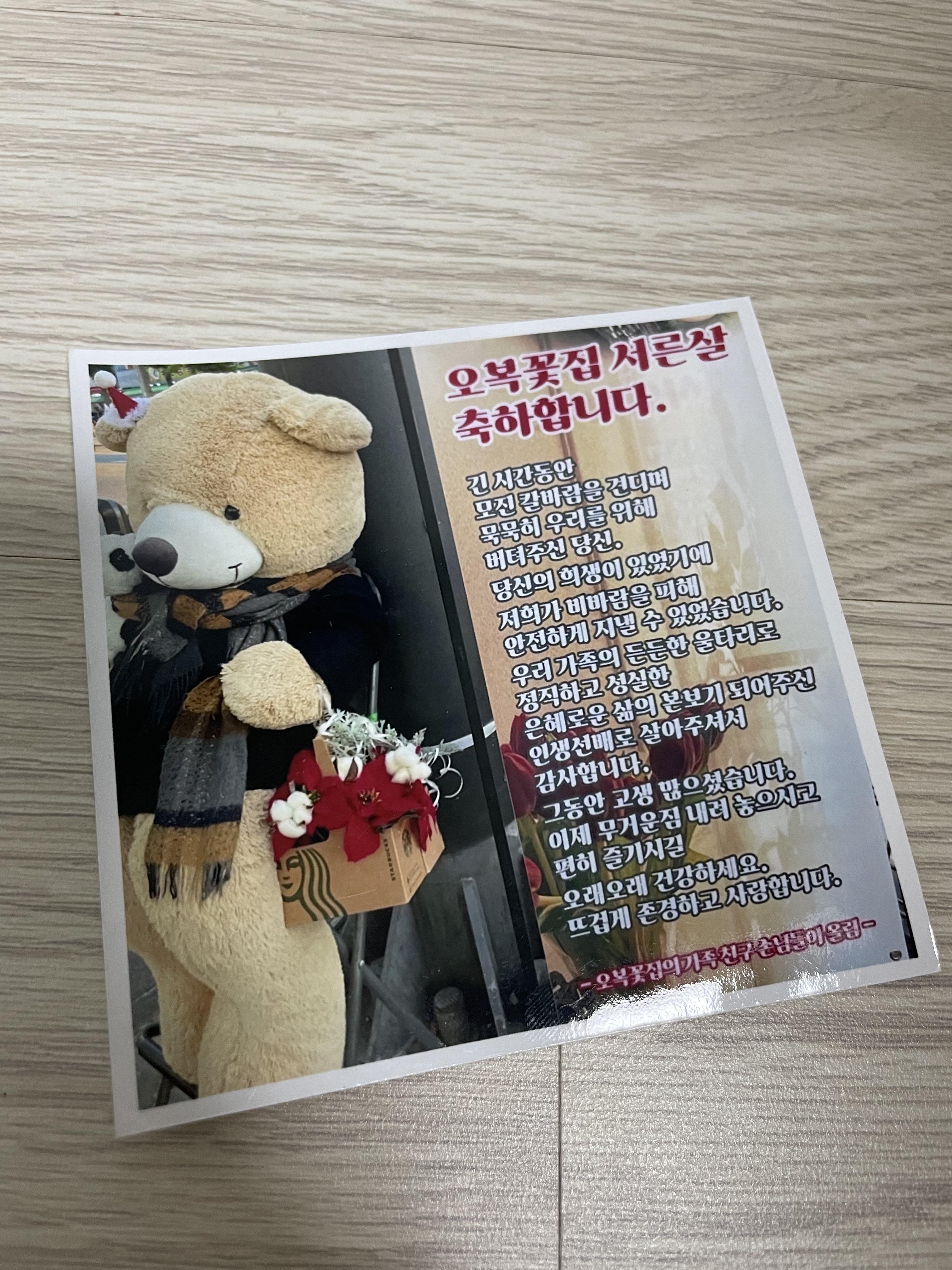 사장님께서 마지막으로 꽃다발 관리하는 법과 오복꽃집 관련한 글을 주셨는데, 세심하게 신경써주셔서 좋다