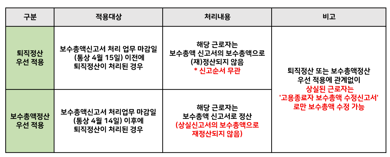 보수총액정산과 퇴직정산의 적용순서