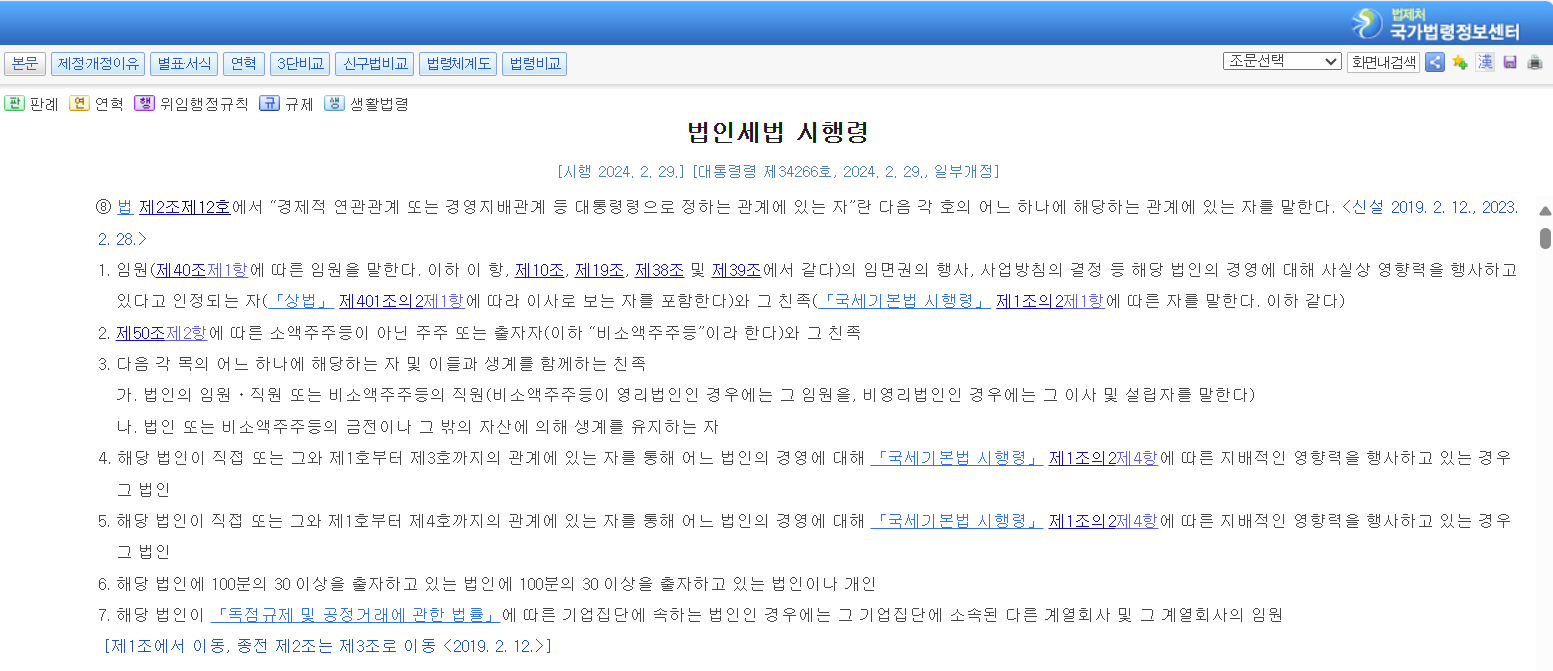 법인세법 시행령 제2조(정의)
