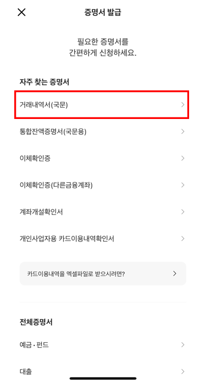 카카오뱅크 이체내역서(거래내역 확인증) 발급 방법