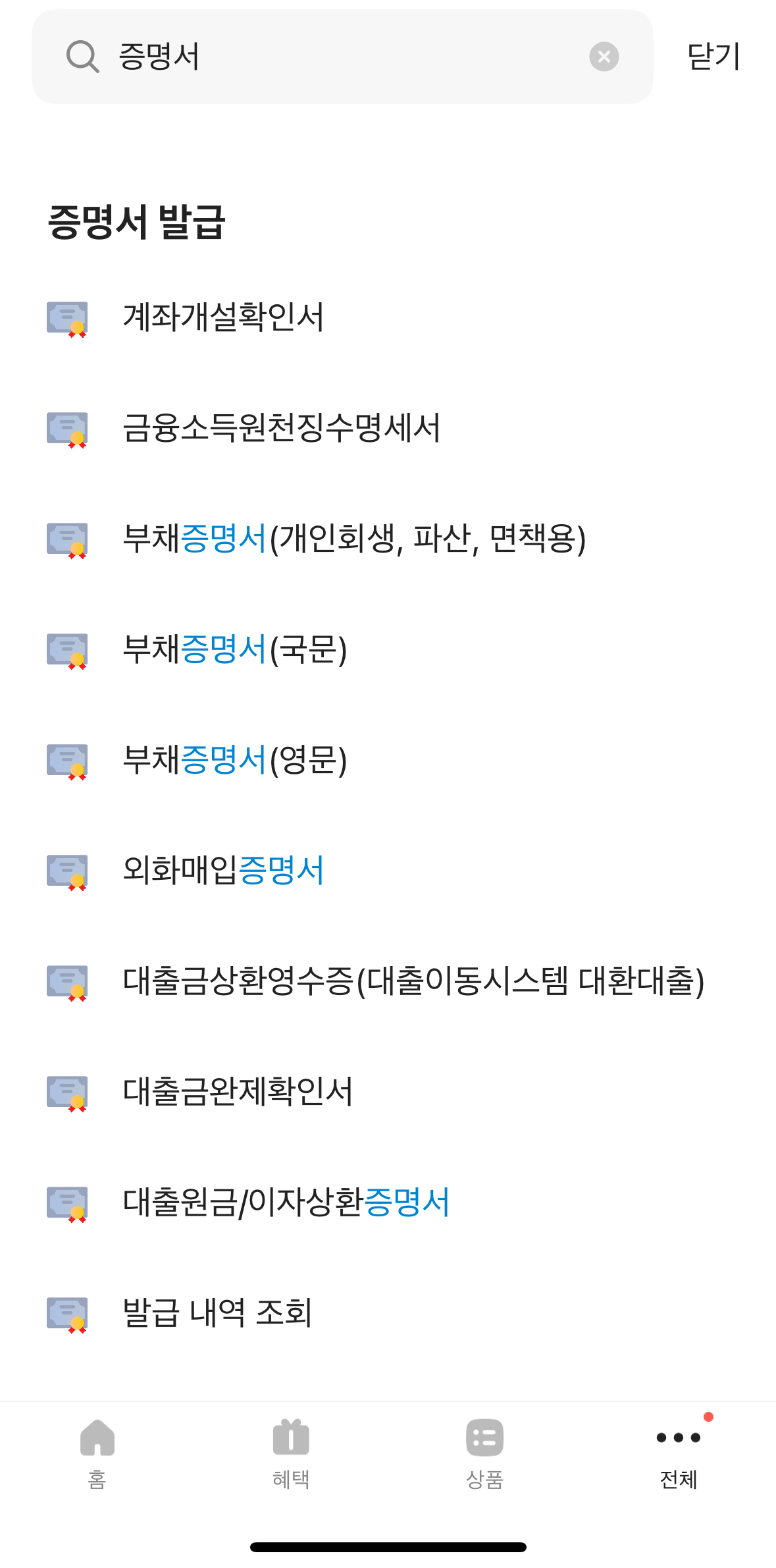 모바일 뱅킹으로 들어가야 이체내역서를 발급받을 수 있다.