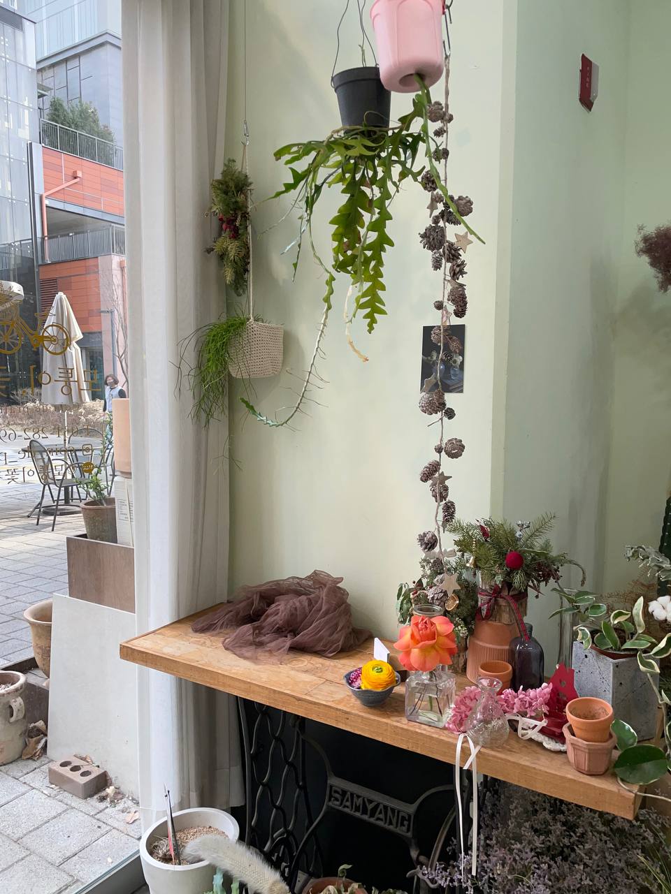 가게 분위기도 인스타 감성이다. 어느 각도로 찍어도 다 예쁘게 나온다. 전체적으로 따뜻한 느낌의 인테리어다. 화분들도 보면 원목 인테리어에 맞춰서 신경 쓰신 것 같다. 화분 하나하나가 다 조화스럽다.