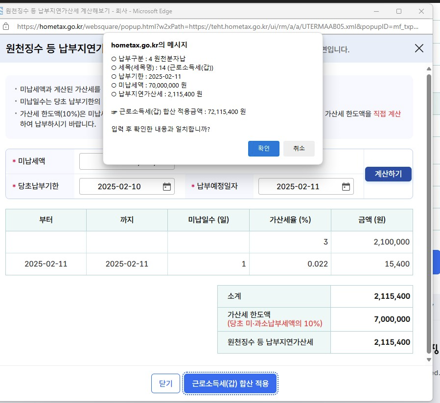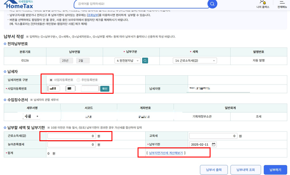 [원천세 가산세] 법인사업자 근로소득세 미납시 가산세 계산, 고지서 다시 만들기