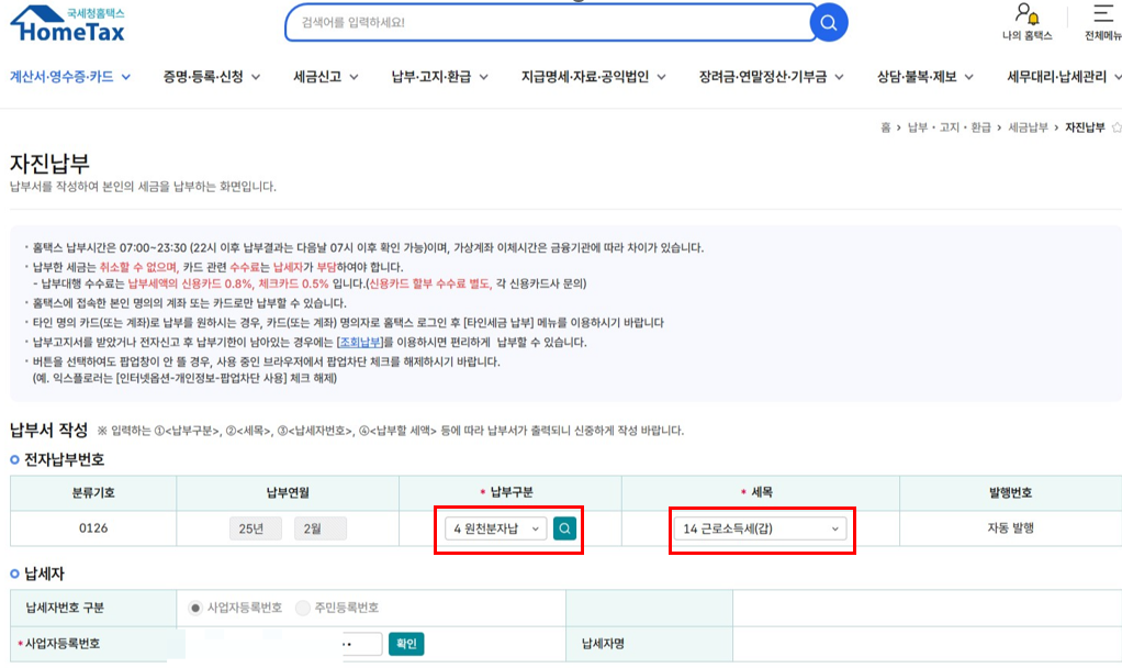 [1] 홈택스 메인 > 납부·고지·환급 > 자진납부