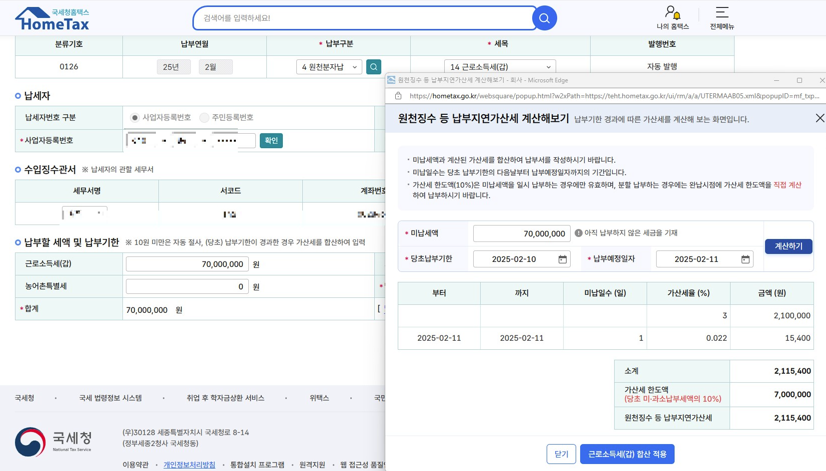 [원천세 가산세] 법인사업자 근로소득세 미납시 가산세 계산, 고지서 다시 만들기