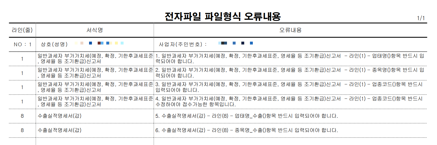 세금 서식에 너무 많은 정보들이 들어가다 보니 하나라도 누락하거나 잘못 기재되면 오류가 뜨기 마련이다. 하지만 수십 가지 오류를 모두 외울 수는 없으니 위의 국세청 사이트를 좀 참고하면 도움이 될 것 같다.