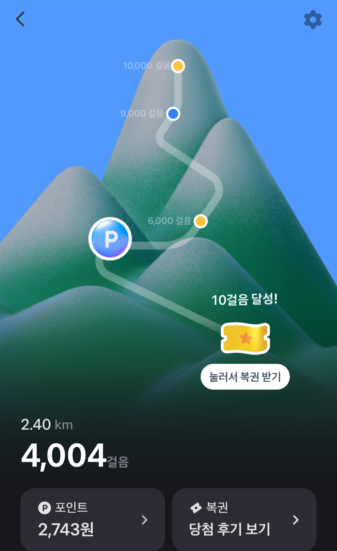 만보를 걸어서 복권을 긁으면 최대 100만 원까지 당첨되는 것 같다.