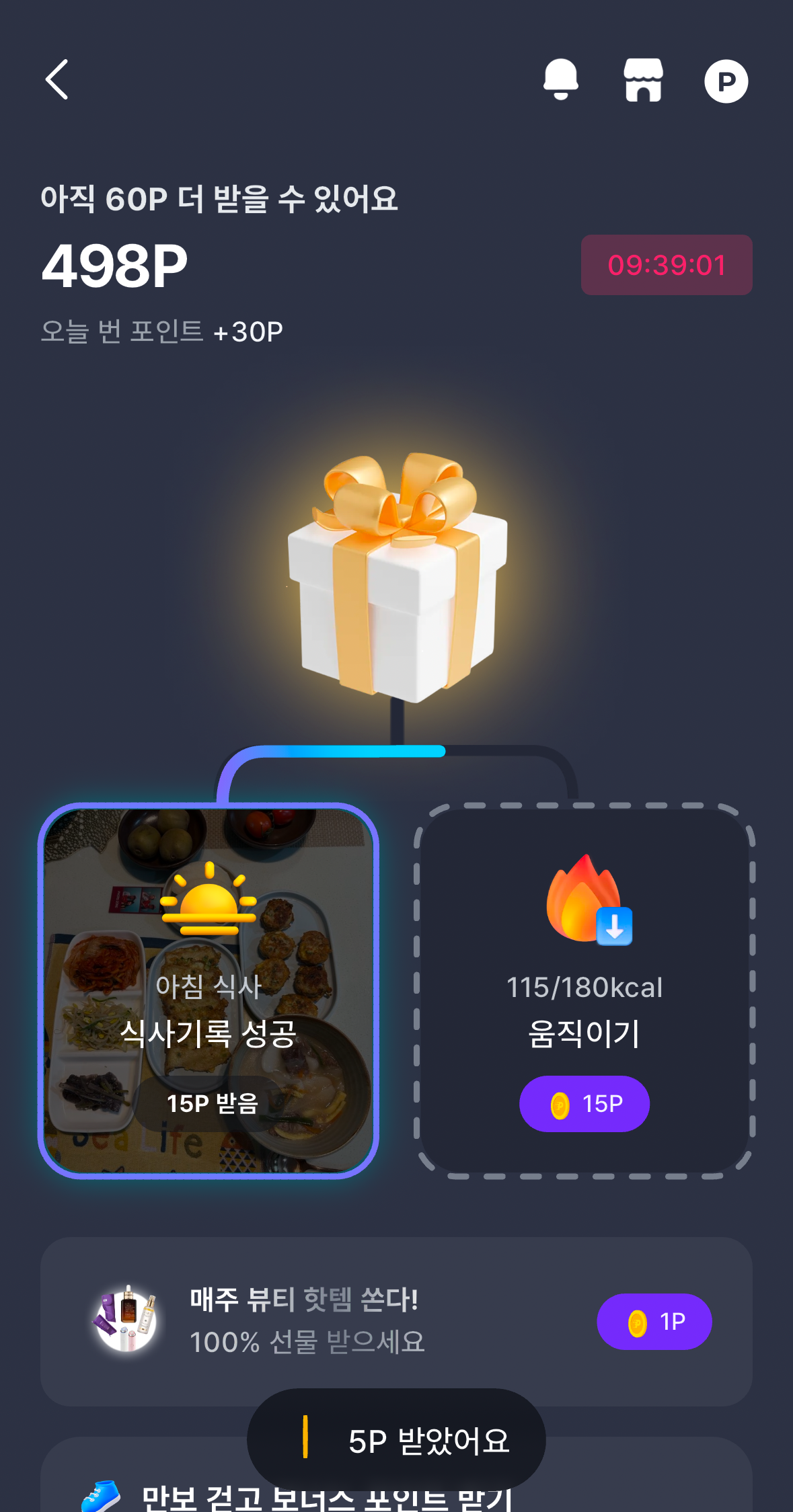 식단을 사진이랑 찍어서 기록하면 포인트를 주고,