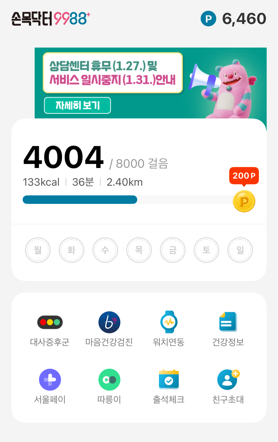 그리고 하루에 만보를 걸으면 포인트를 준다.