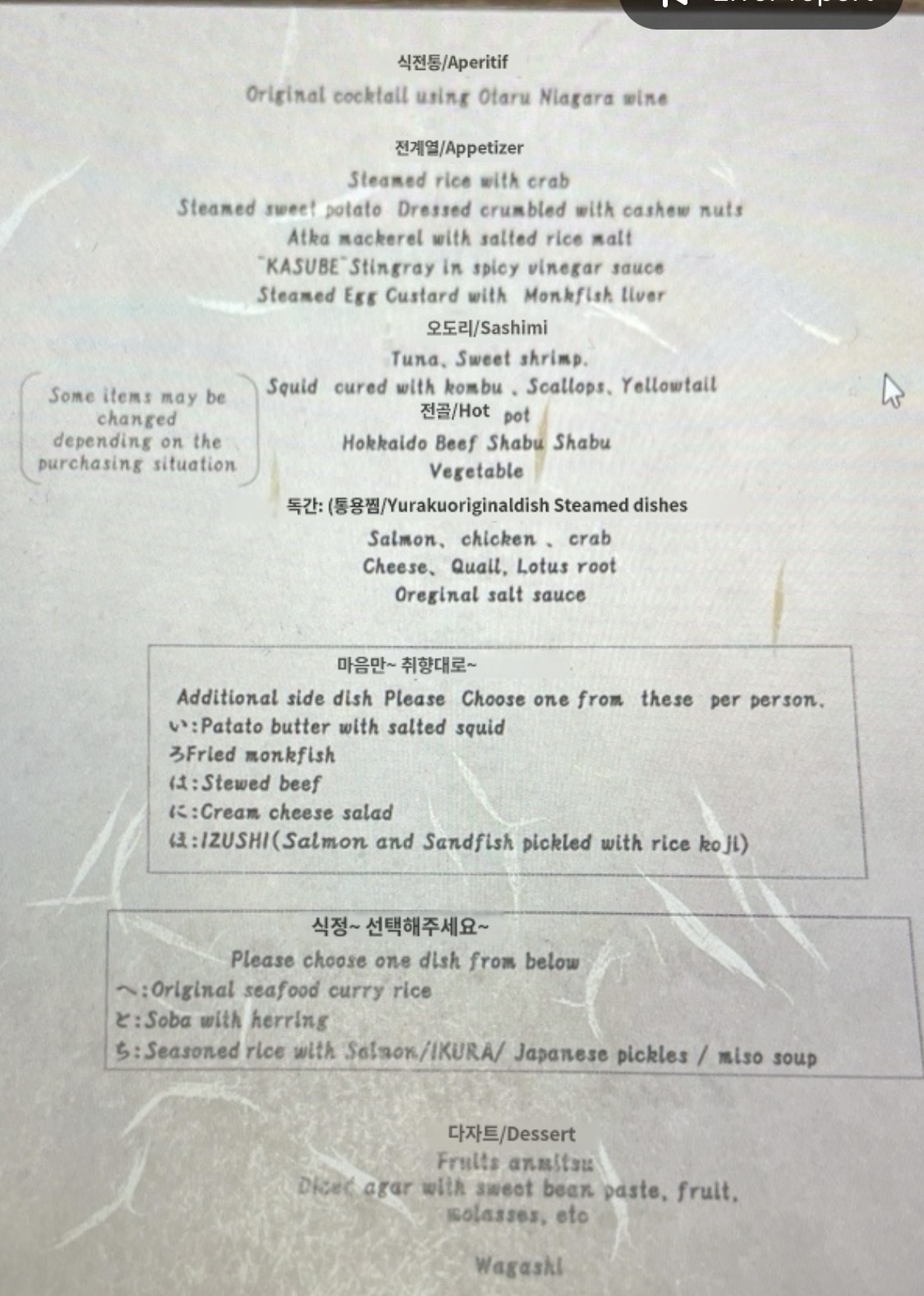 삿포로에서 식비를 생각보다 별로 안쓴 이유도 유라쿠소안에서 조식/석식을 다 제공해줬기 때문인데,