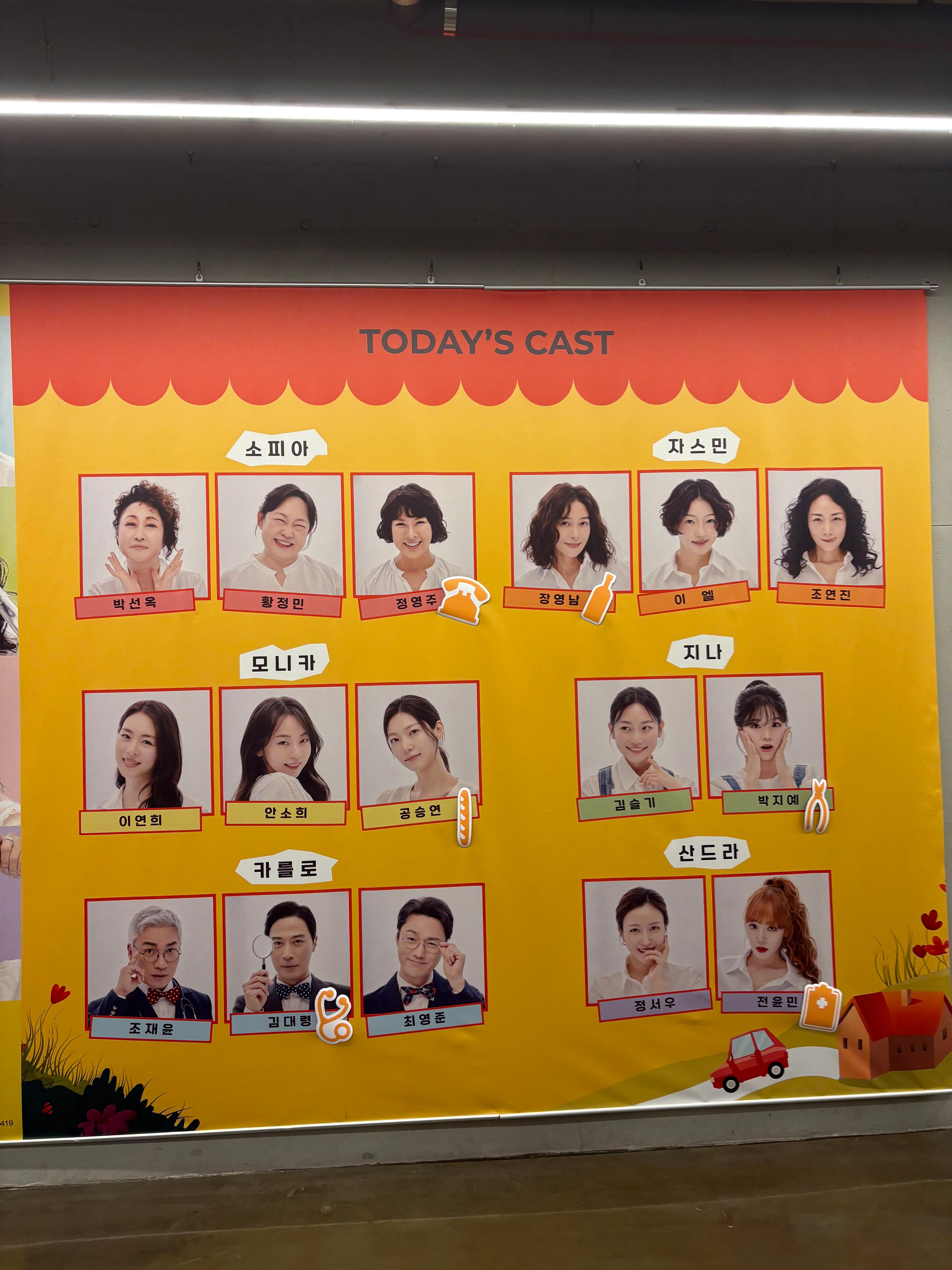 장진 감독이 연출을 하기도 했고 나오는 분들도 꽤 유명하신 분들이 많아서 그런지 공연장도 연극공연장같지 않게 컸다. 그리고 거의 모든 좌석이 꽉 차있었다. 이것이 티켓 파워인가. 나의 경우에는 애초에 자스민 역의 장영남 배우님을 정한 후 다른 캐스팅과 일정을 맞춘 것이었다. 소피아를 맡으신 배우님들은 (내 개인적 생각이지만) 크게 고려하지 않았는데 저정도 연배인데 계속 연극판에서 살아남아계시다면 누가 하시든 각자의 매력이 있을 것이라고 생각했다. 모니카의 경우는 이연희 배우님과 안소희 배우님(?)(아이돌이셨던 것 같은데 이제 배우신건가)의 연기를 좋은 평을 들었던 적이 없는 것 같아 공승연 배우님으로 선택했었다. 지나 역은 선택지가 많지 않았는데 그냥 장영남 픽으로 되는 날짜를 고르니 박지예 배우님이셨어... (결과적으로 매우 즐거웠던 조합이었다. )