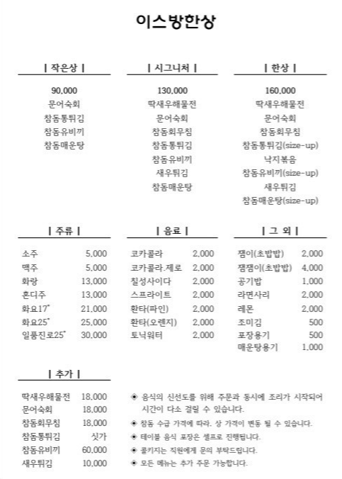 아래 글과는 다른 시점에 다른 사람들과 갔었다. 심지어 아래 글은 나도 포함되지 않았었기에 다른 사람이 다녀간 이스방 한상 글이다.