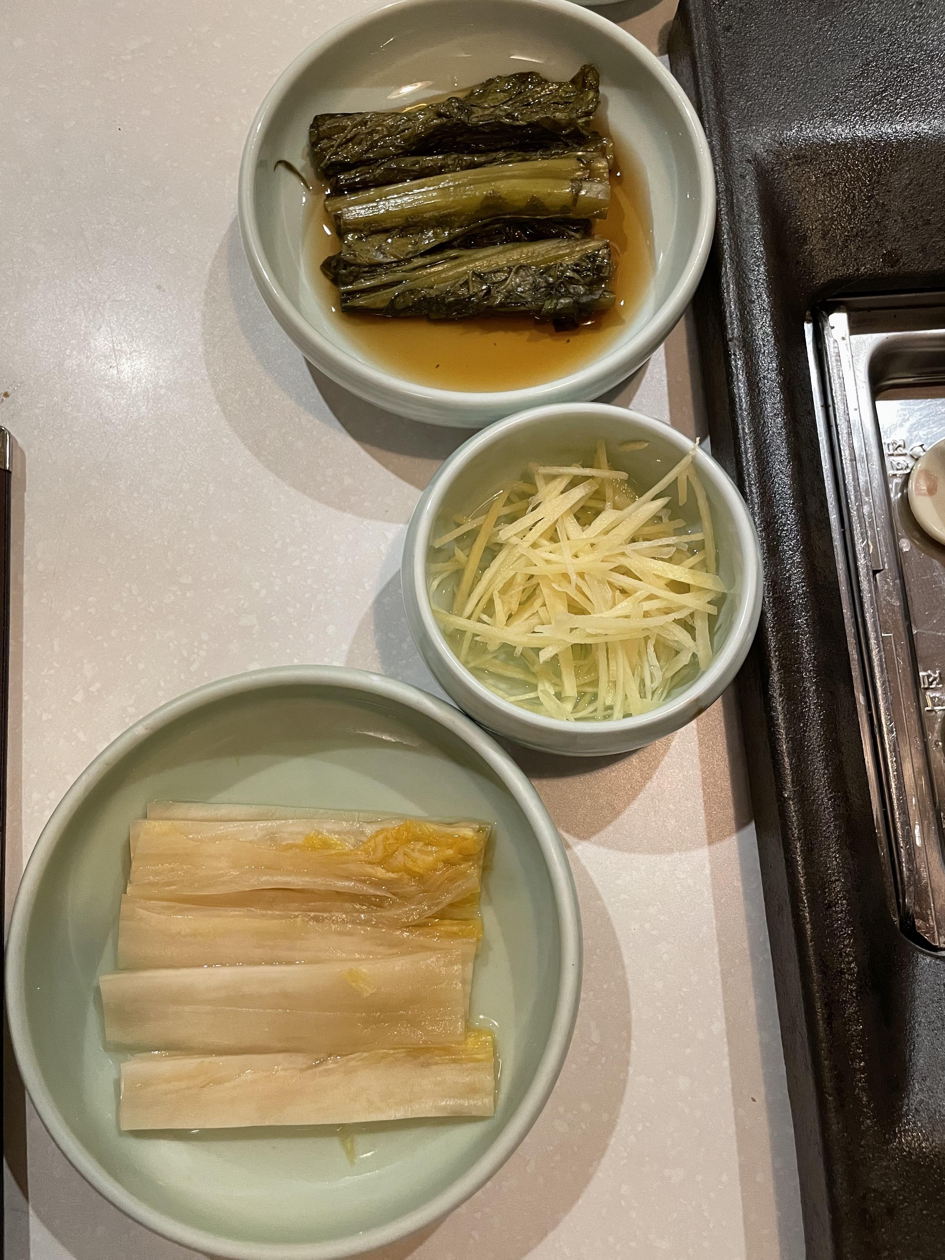 백김치/갓김치/생강 기타 기본 찬이 정갈하고 깔끔하다.