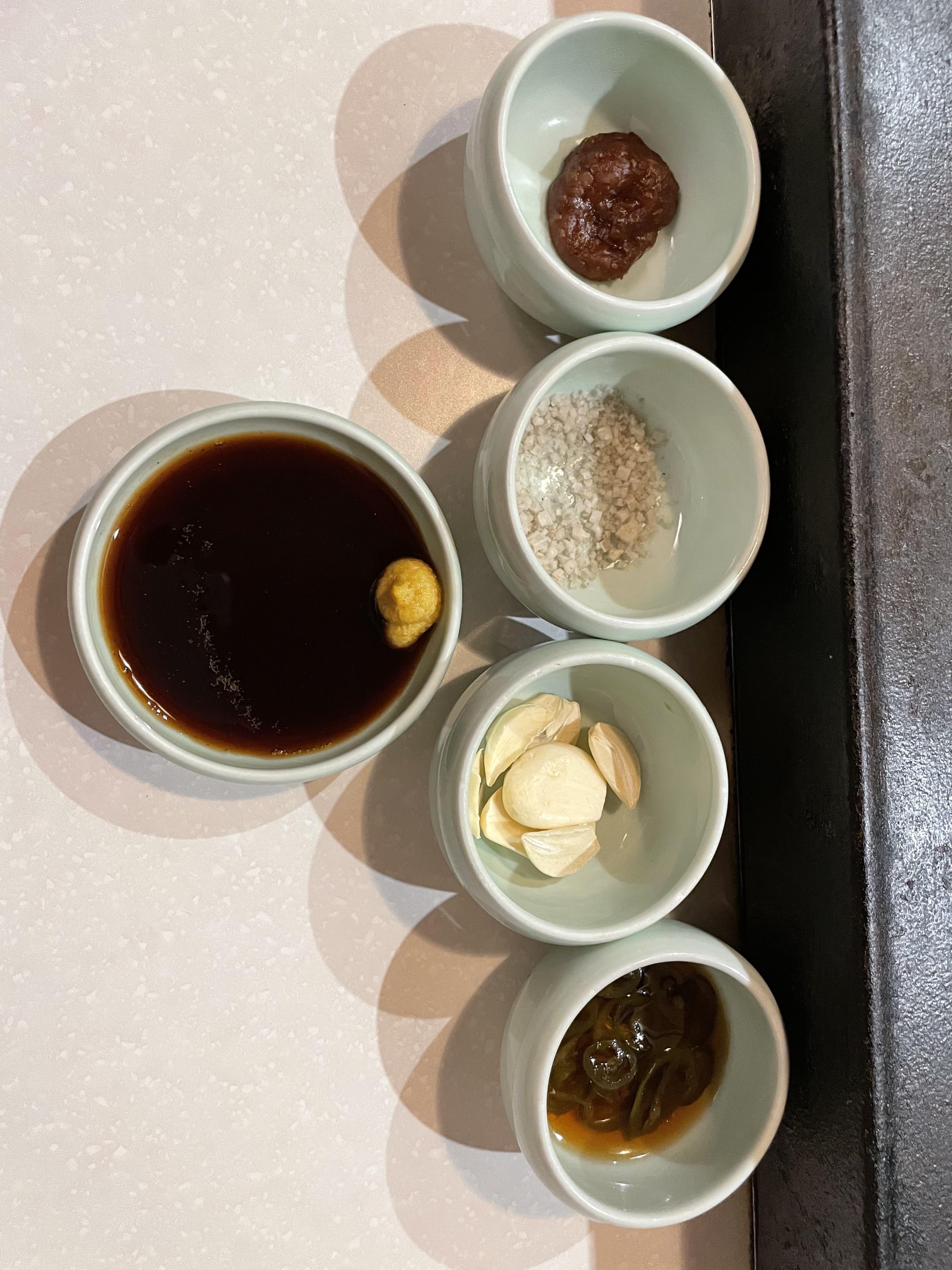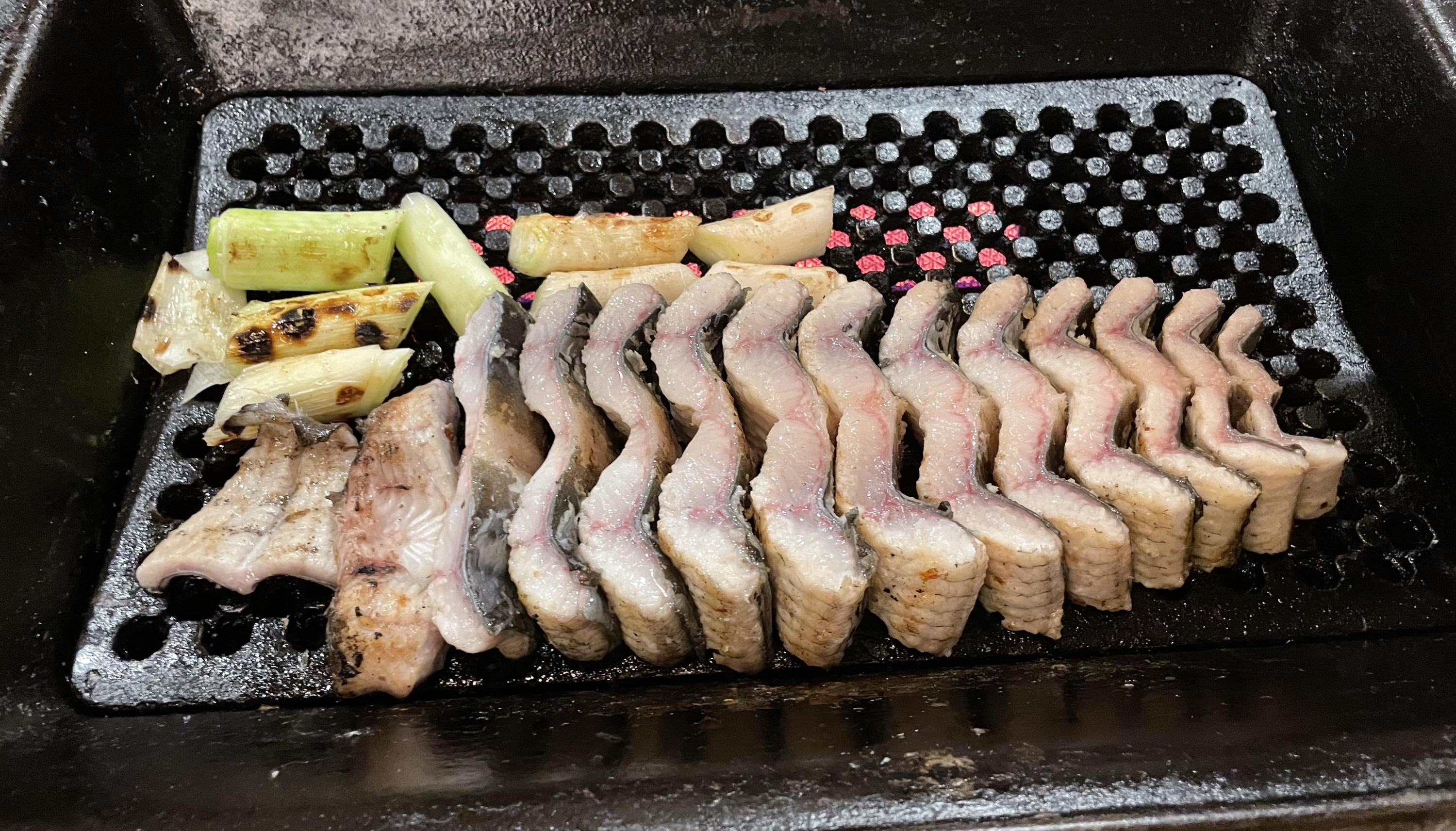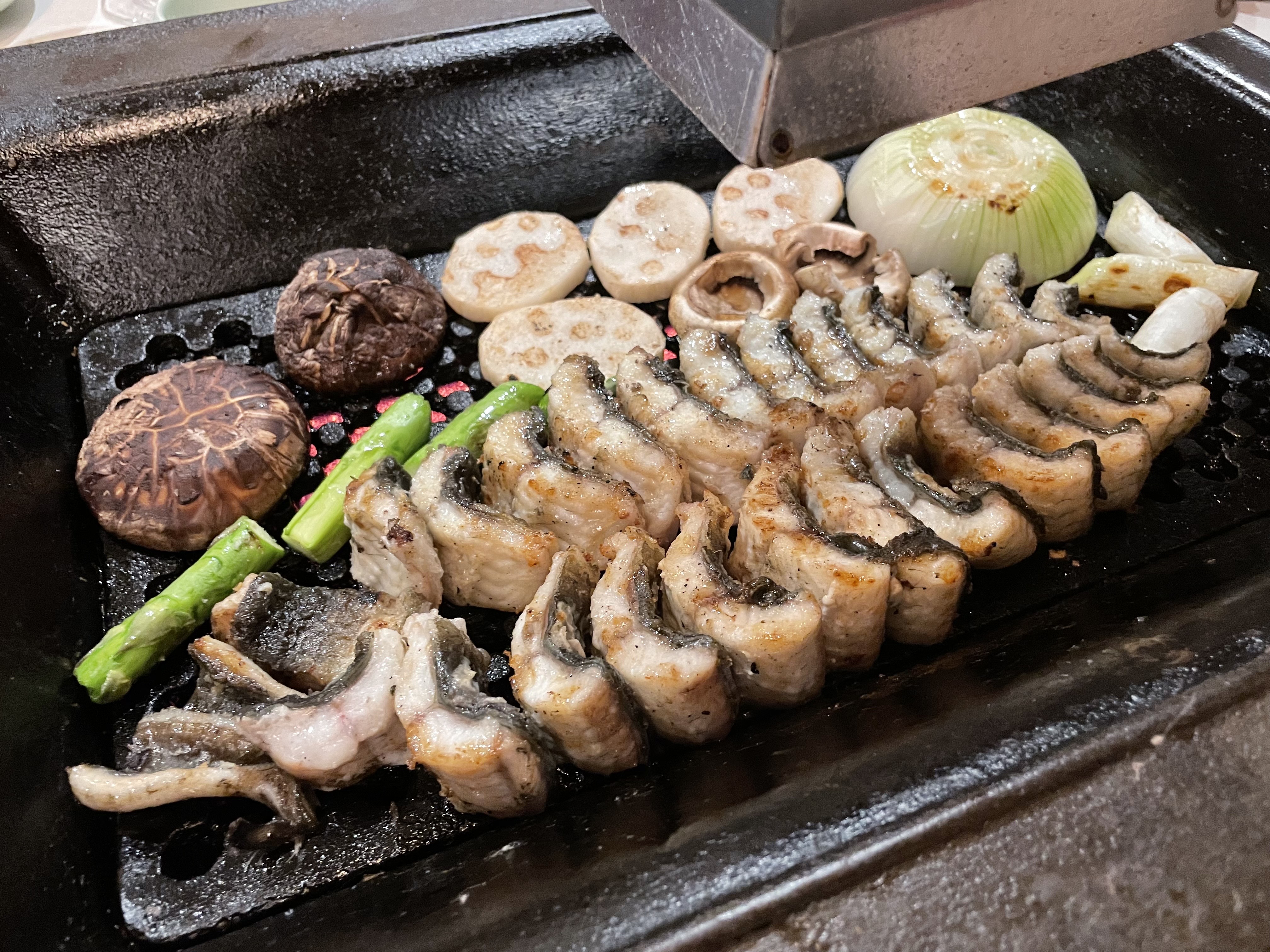 하지만 2명이서 먹기에는 선택과 집중이 필요하다. 우리는 갯벌장어 3인분에 구이용 야채모둠을 시켰다. 3인분 이상을 시켜야 특수부위와 쓸개즙을 준다고 하시기에.... ㅎㅎㅎㅎ