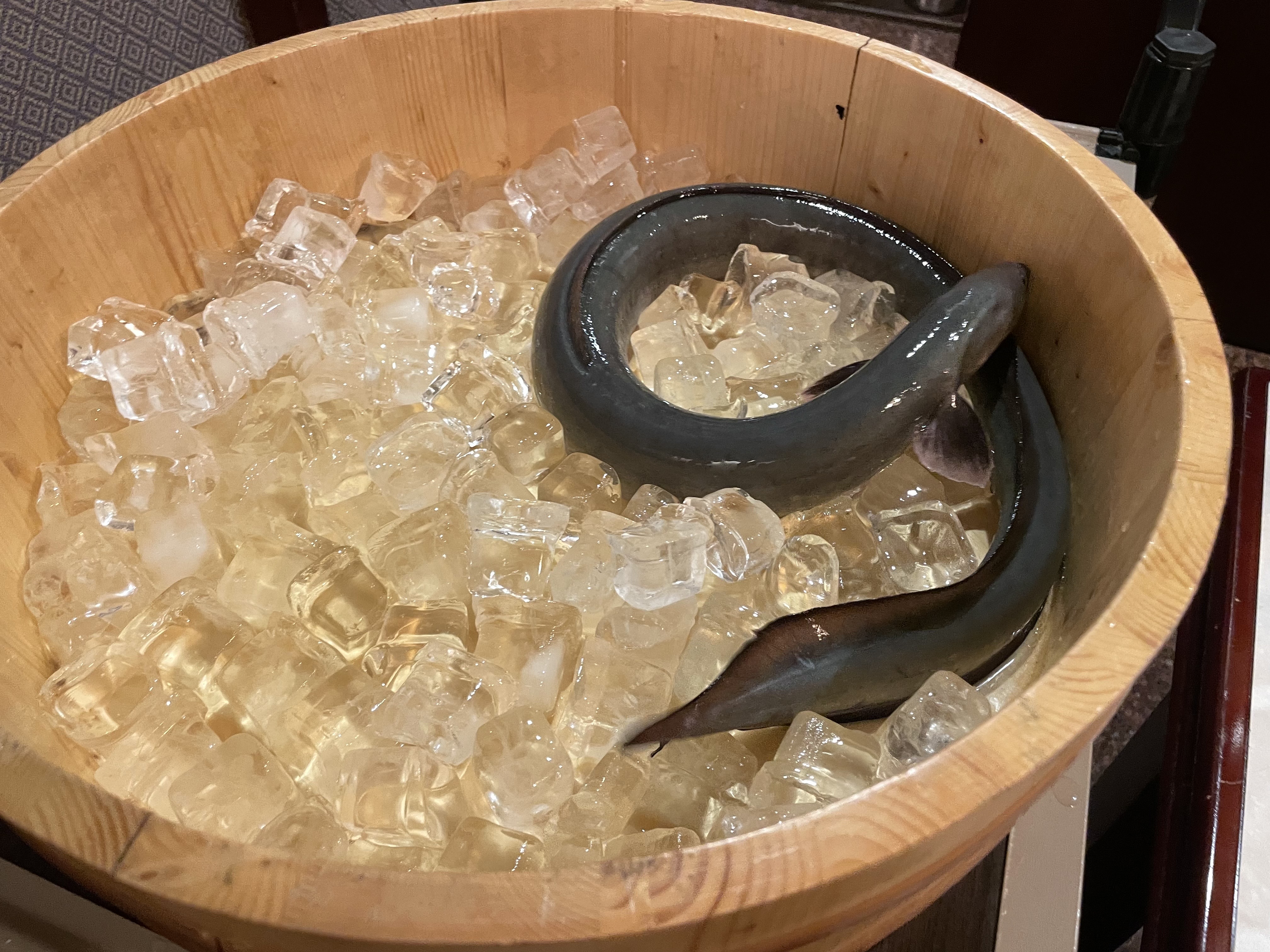 종업원분이 들고 오셨는데 장어가 바구니에서 막 몸부림치고 나오려고 하니 종업원분이 너무 겁을 먹으셨다.