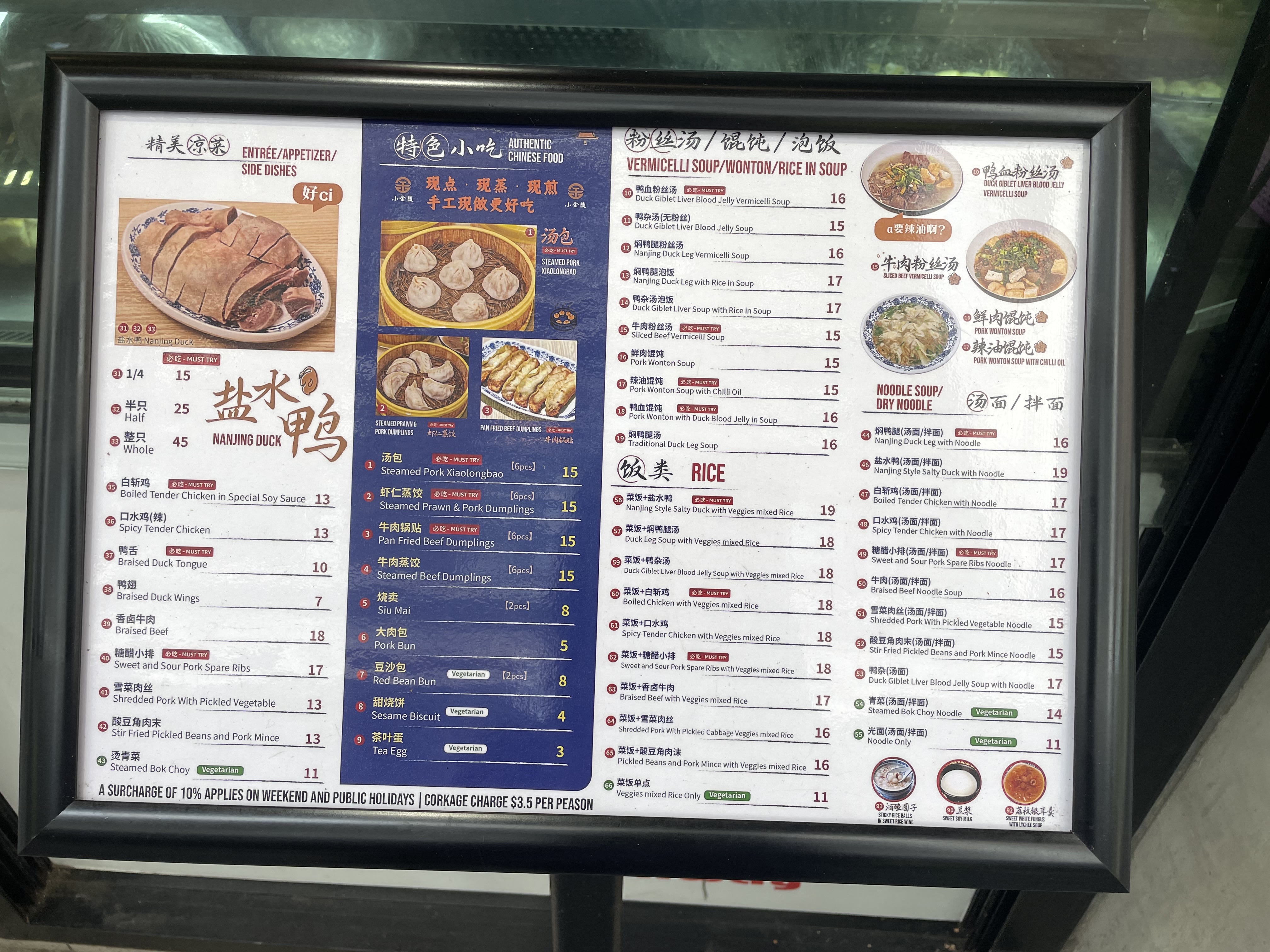 난징덤플링 메뉴판(메뉴가 너무 많아ㅠㅠ)