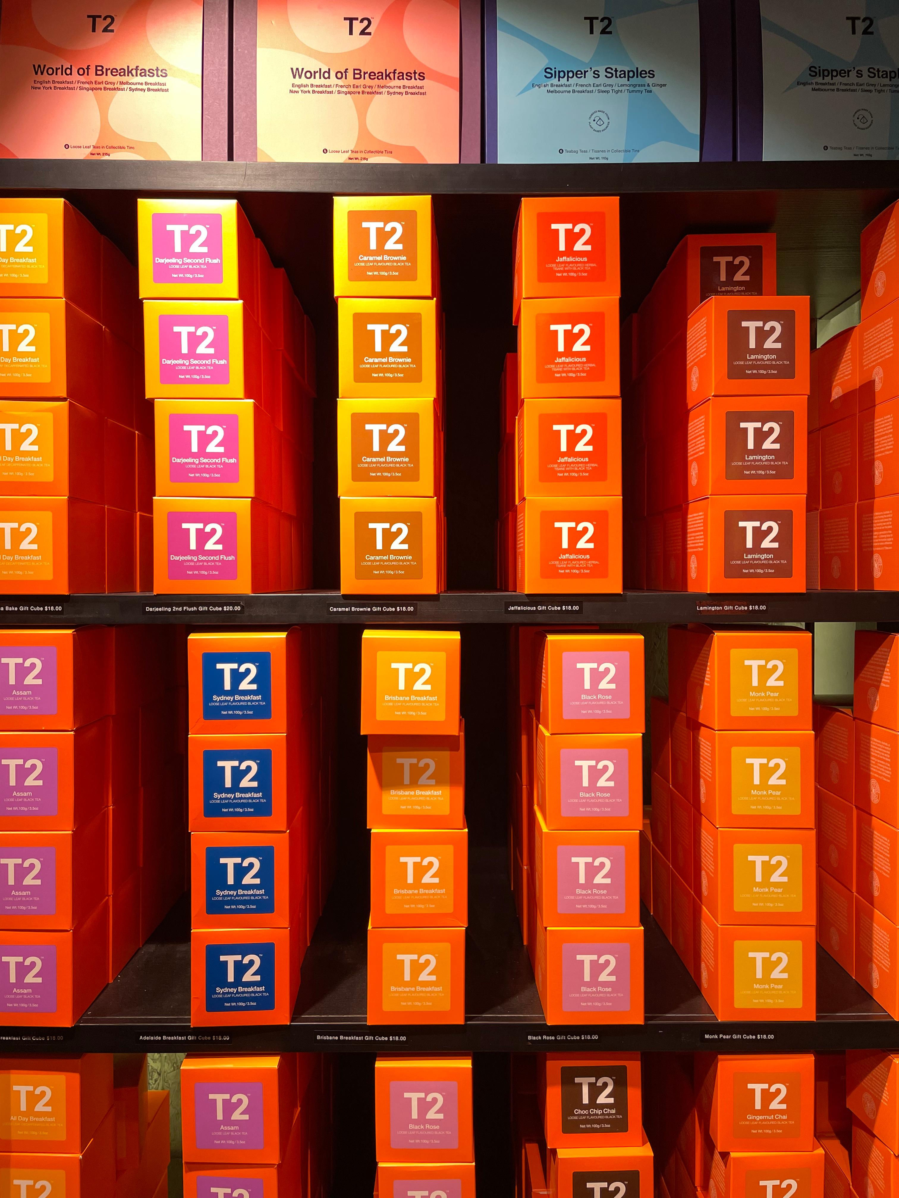 * 고품질의 차: T2는 다양한 종류의 잎차(Loose Leaf Tea)와 티백을 제공, 세계 각국에서 선별한 고품질의 차를 사용함. 이 브랜드는 특히 프리미엄 차를 선호하는 사람들 사이에서 유명함.