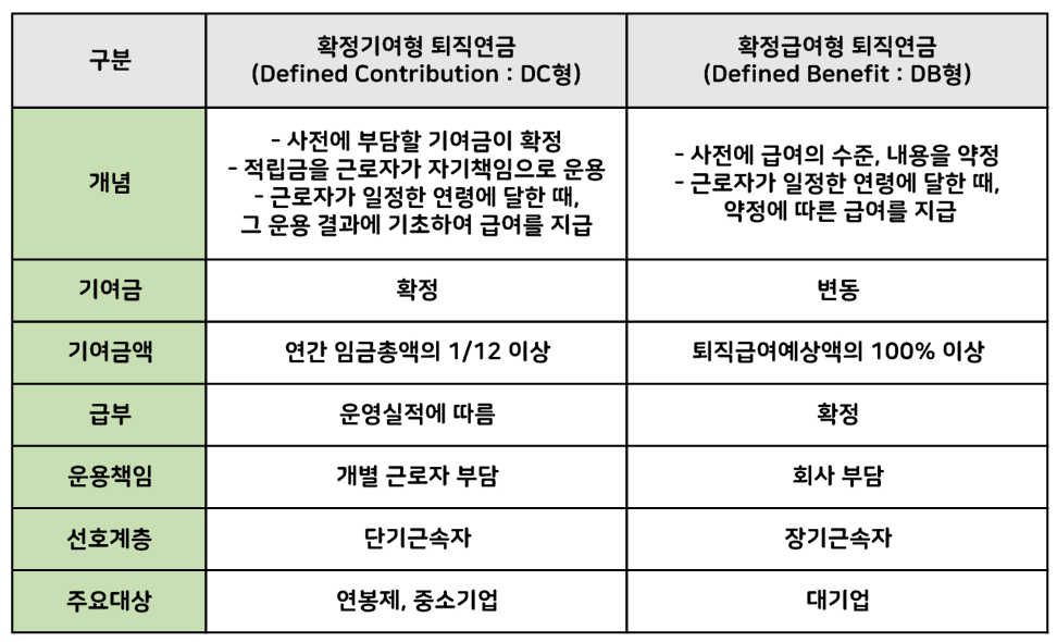 퇴직연금 DC와 DB의 비교