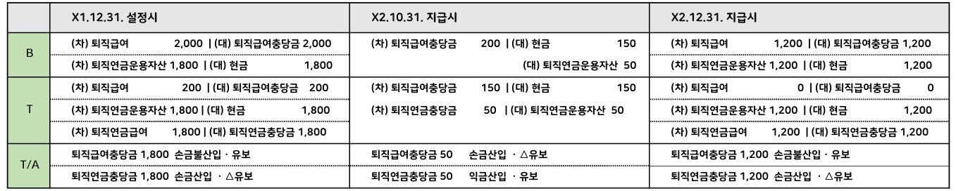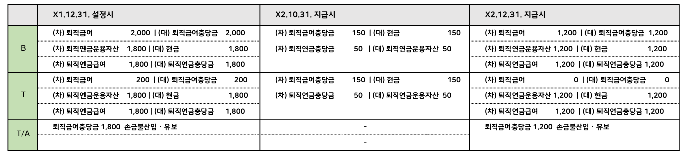 1) x1.12.31.퇴직급여충당금 2,000 설정 (세법상 한도 200), 퇴직연금 DB형 1,800 납입